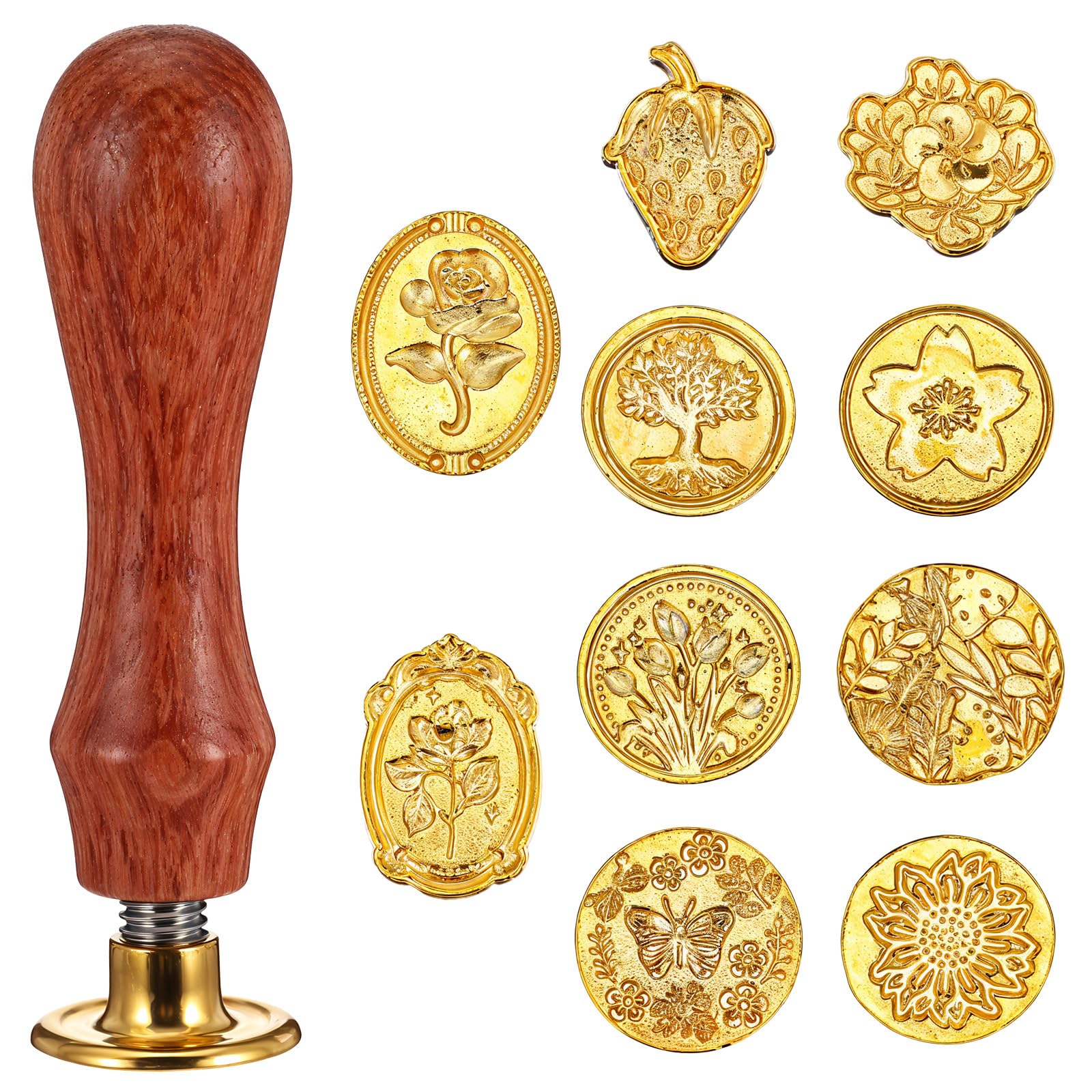 10 Pcs Wax Seal Stamp Kit with Wooden Handle Botanical Flower and Butterfly Wax Seal Stamp Vintage Wax Seal Molds for Wedding Invitations, Greeting Cards, Planners, Gift Letters
