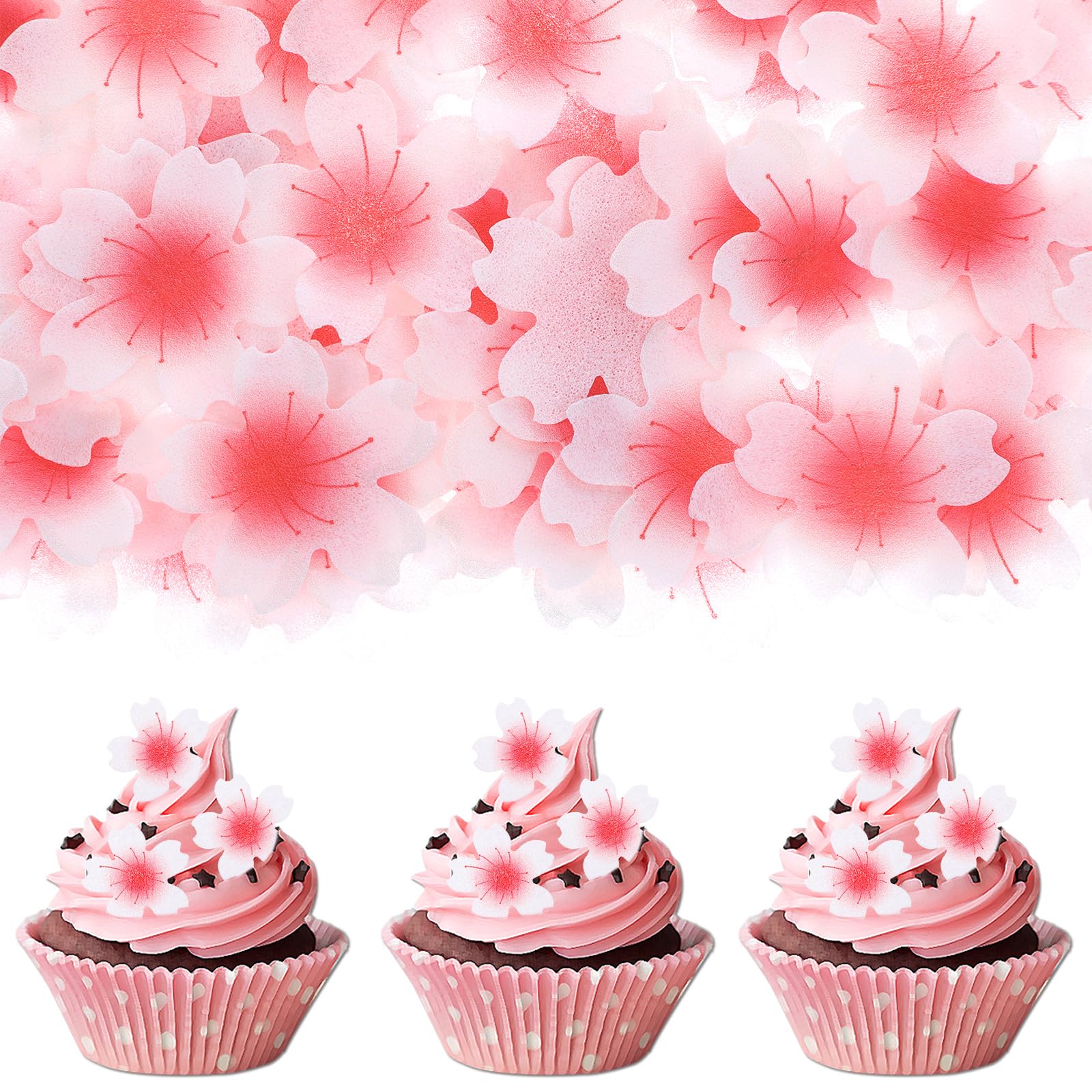 100 Pcs Edible Cherry Blossom Cake Decoration Edible Cherry Blossom Cake Topper Edible Wafer Paper Flowers Cupcake Toppers Edible Cake Flowers for Baby Shower Birthday Party Food Decorations Supplies