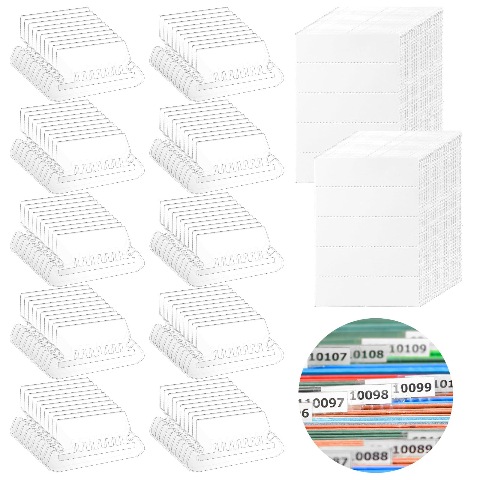 100 Sets Hanging File Folder Tabs 1.2 Inch Clear Transparent Labels for Easy File Identification, Plastic Tabs and Inserts for Hanging Folders