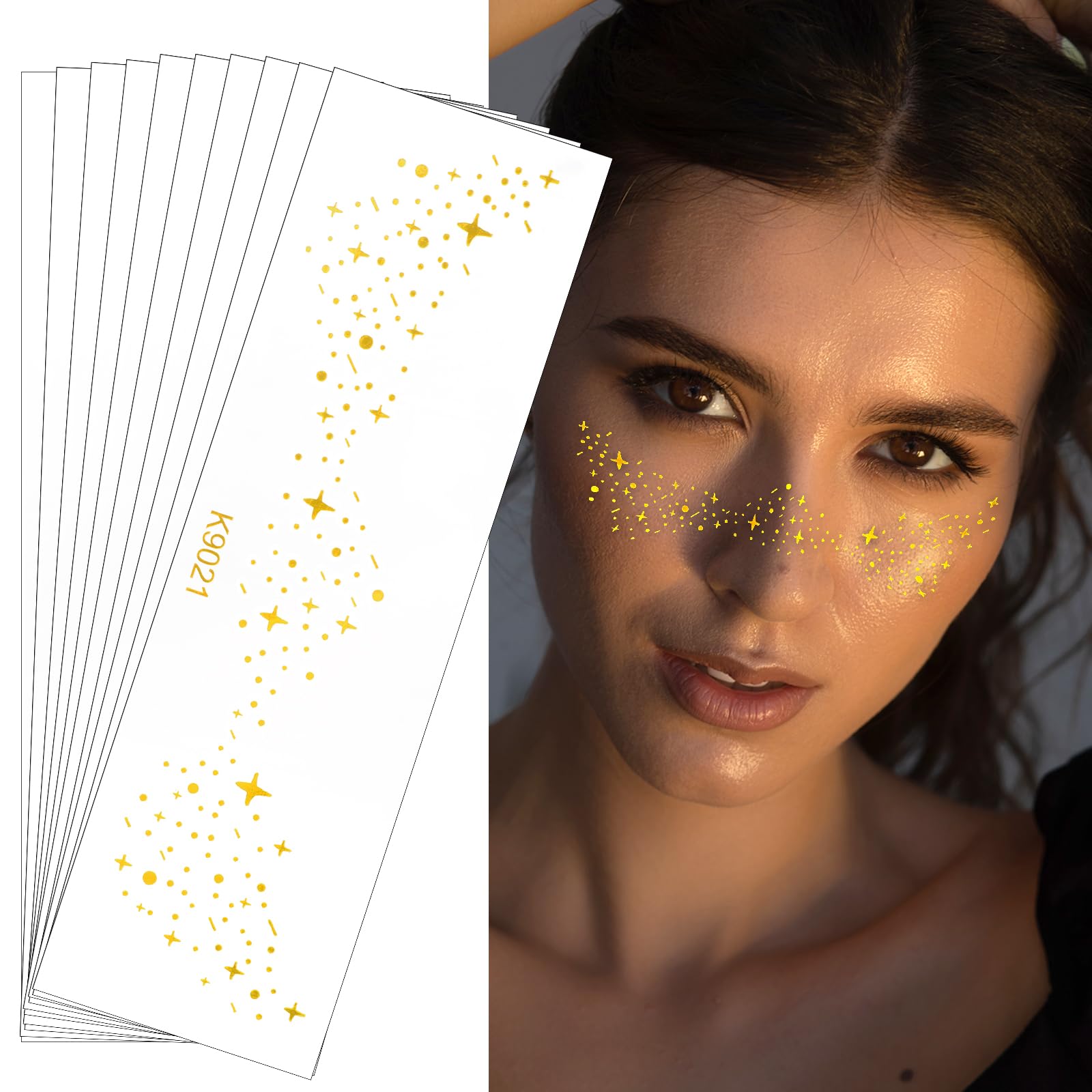10Pcs Glitter Freckles Face Stickers, Glitter Freckles Tattoo, Face Glitter Freckles Patches for Women Dancer Costume And Party Makeup Accessory
