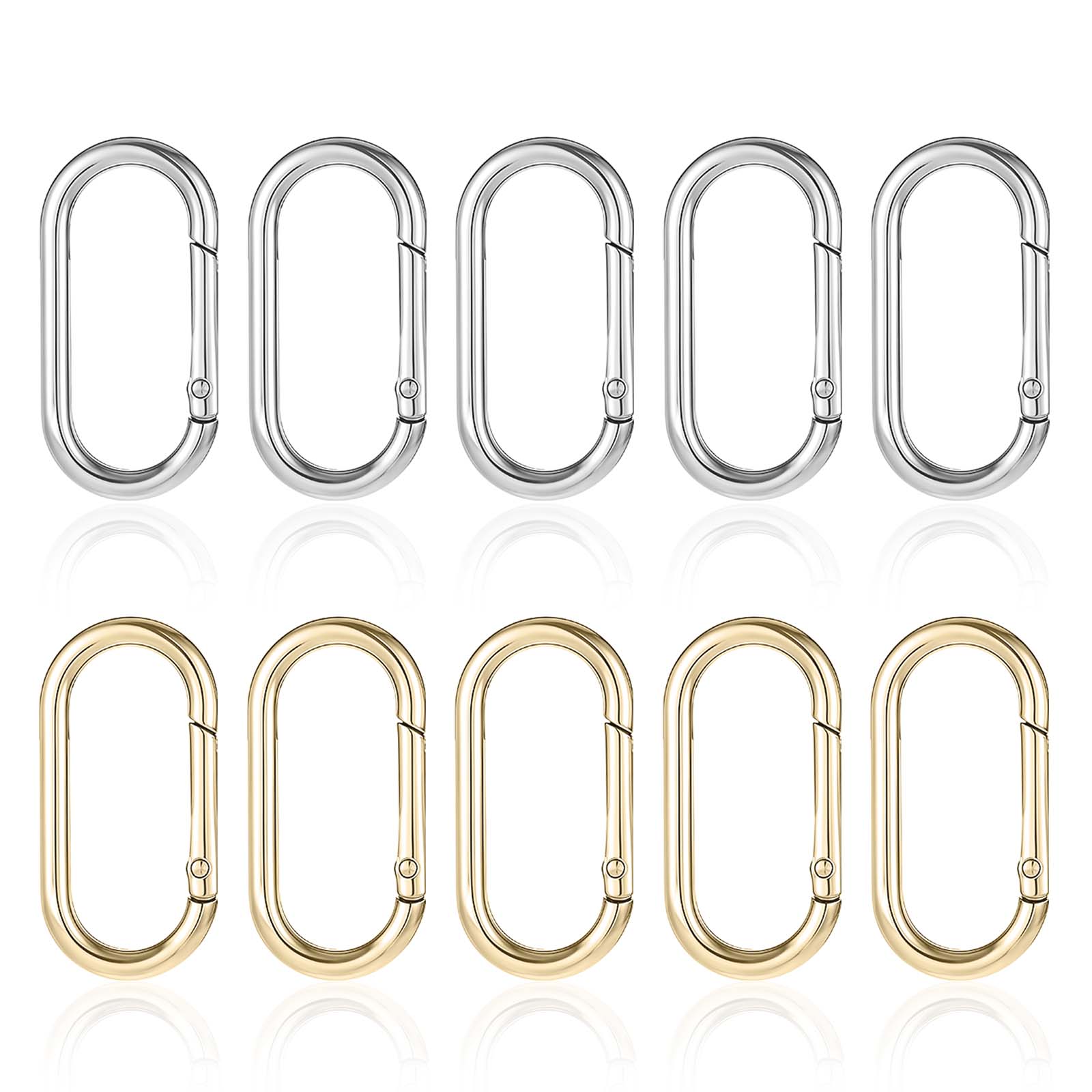 10Pcs Gold Spring O Ring Clips Metal Keychain Ring Oval Carabiner Clips for Backpack Purse Keys Bag Strap 1.97x0.98 Inches (Gold, Silver)