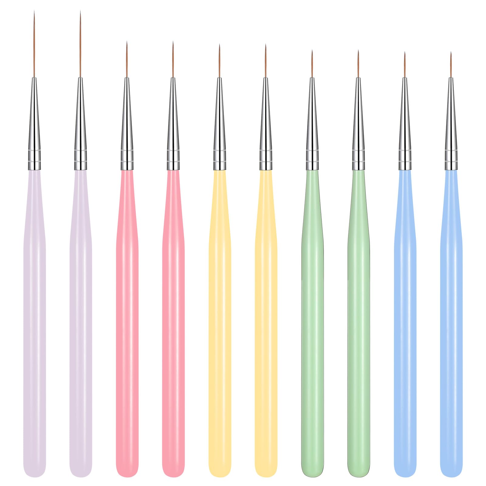 10Pcs Nail Art Liner Brushes Professional Gel Nail Brush Acrylic Nail Paint Brush 7/9/11/13/21mm Thin Nail Brush Nail Detail Brush for Nail Design Polish