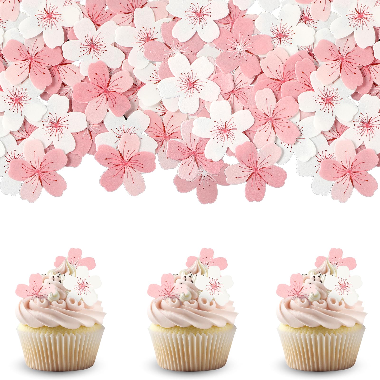 60 Pcs Edible Cherry Blossom Cake Decorations Edible Cherry Blossom Flowers Cupcake Toppers Wafer Paper Flowers Cake Topper Edible Rice Paper Cake Flowers for Birthday Party Food Decorations Supplies