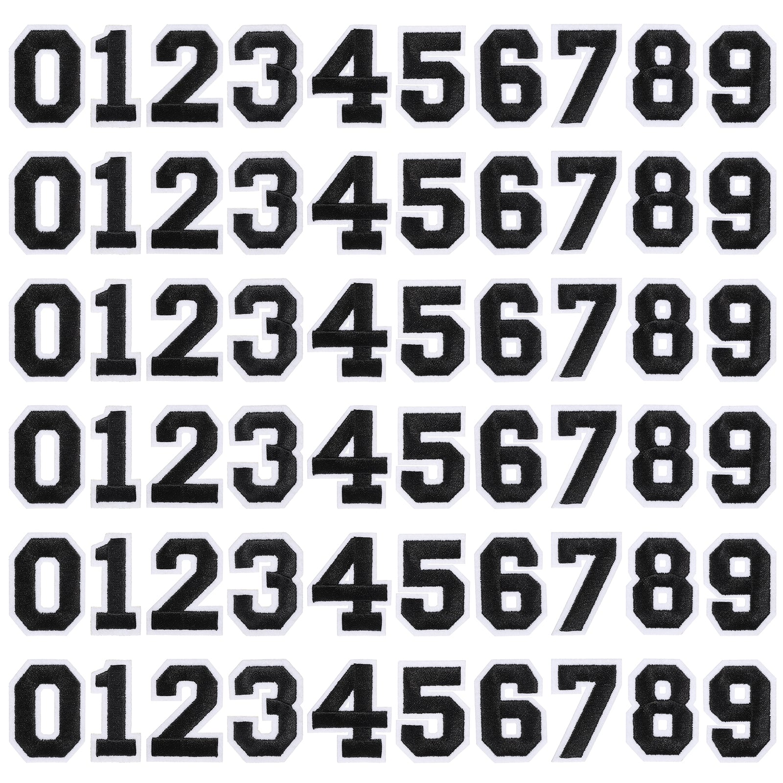 60 pcs Iron on Numbers, Number Patch 0-9 Numbers Decorative Patch Sewing Embroidery Applique Patches for Jeans Hats Jackets Backpacks Shirts Bags(Black)