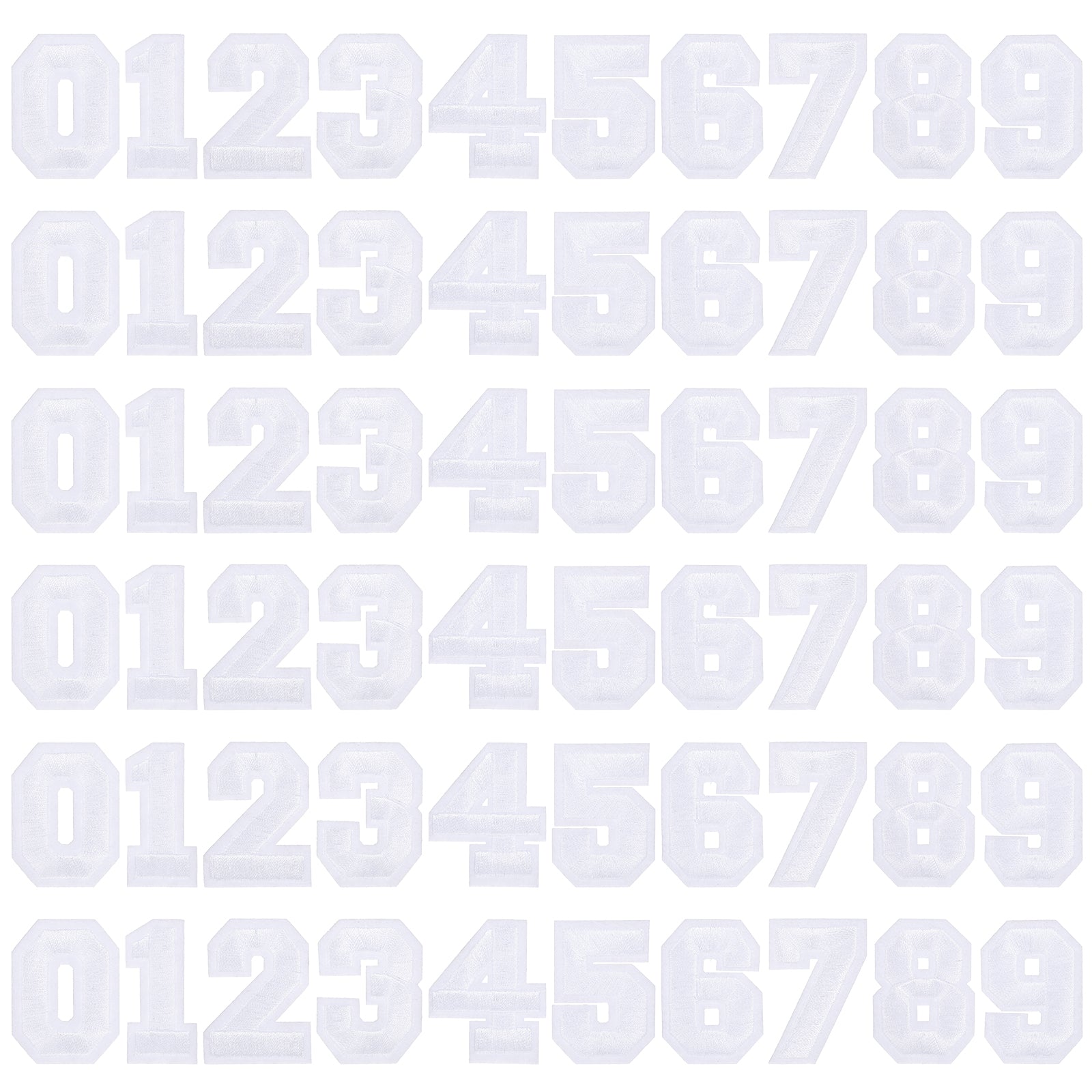 60 pcs Iron on Numbers, Number Patch 0-9 Numbers Decorative Patch Sewing Embroidery Applique Patches for Jeans Hats Jackets Backpacks Shirts Bags(White)