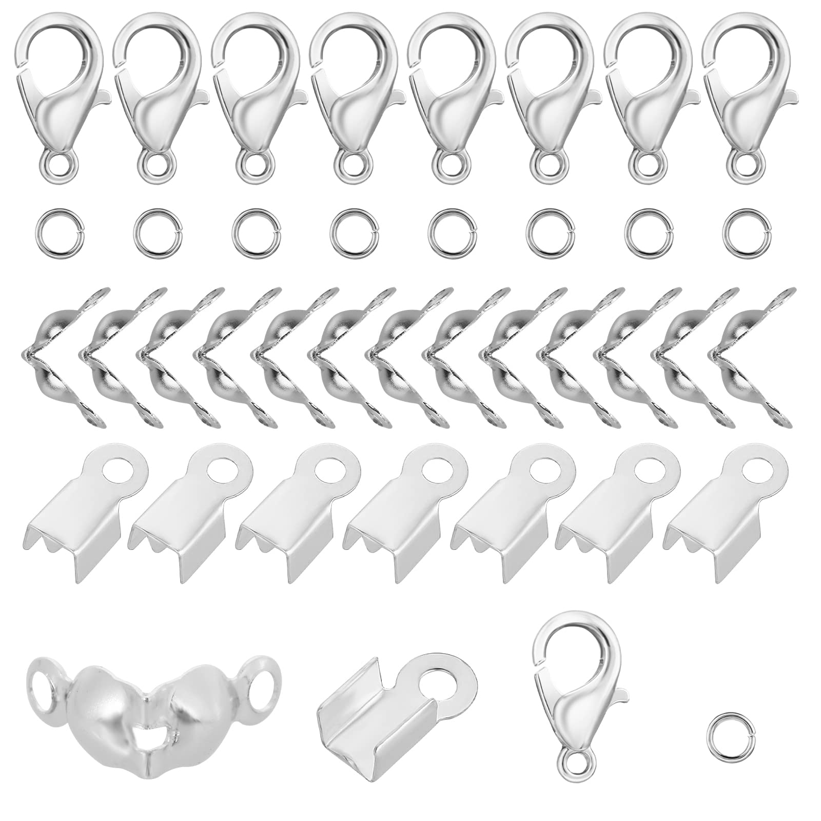 650 Pcs Jewelry Making Finding Accessories Set Includes 200Pcs Bead Tips Knot Covers 200Pcs Open Jump Ring Connectors 200Pcs Fold Over Cord Ends Terminators and 50Pcs Lobster Claw Clasps