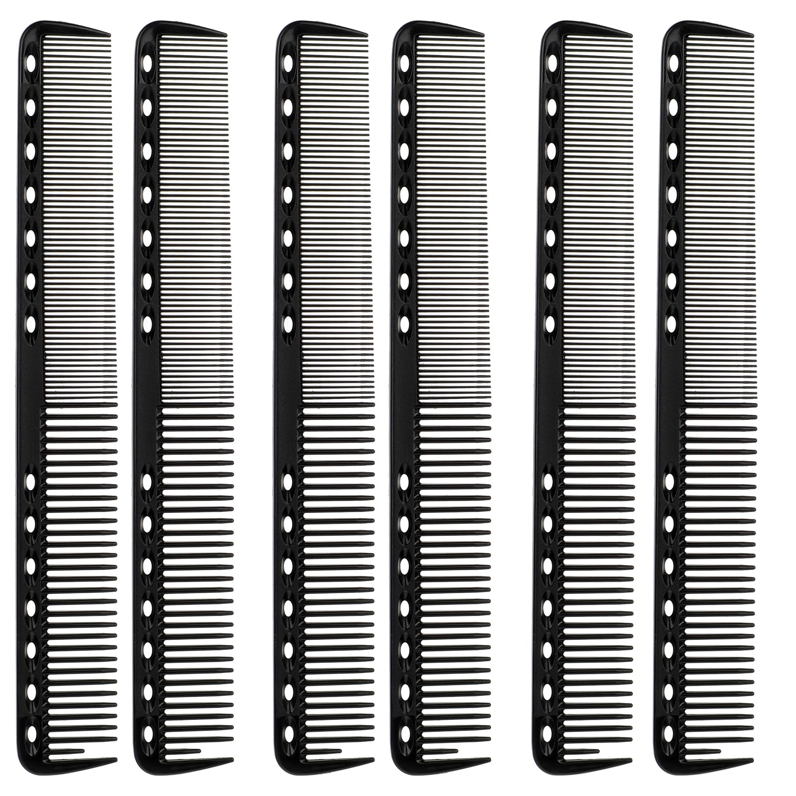 6Pcs Cutting Combs for Hair Stylist Professional Carbon Fine Cutting Comb Heat Resistant Carbon Fiber Salon Hairdressing Comb for Men (Black)