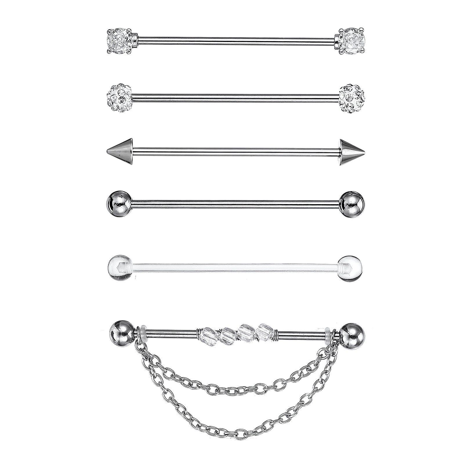 6pcs Industrial Piercing Jewelry, Surgical Steel Industrial Barbell Earrings, Cartilage Helix Piercing Earrings, Pink, Silver