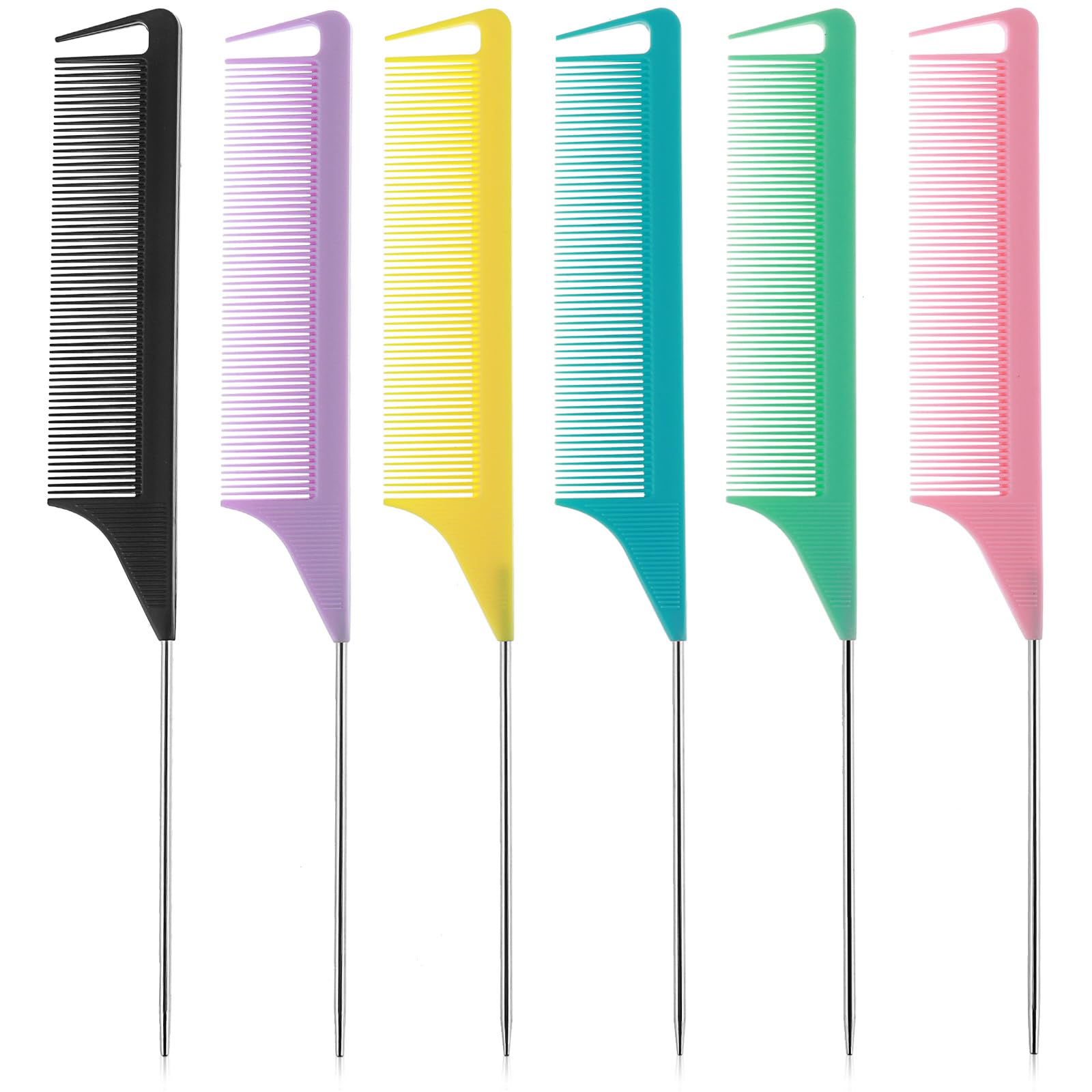 Product name: 6pcs comb with metal tail, rat tail combs for hair stylist, parting combs for braiding hair
