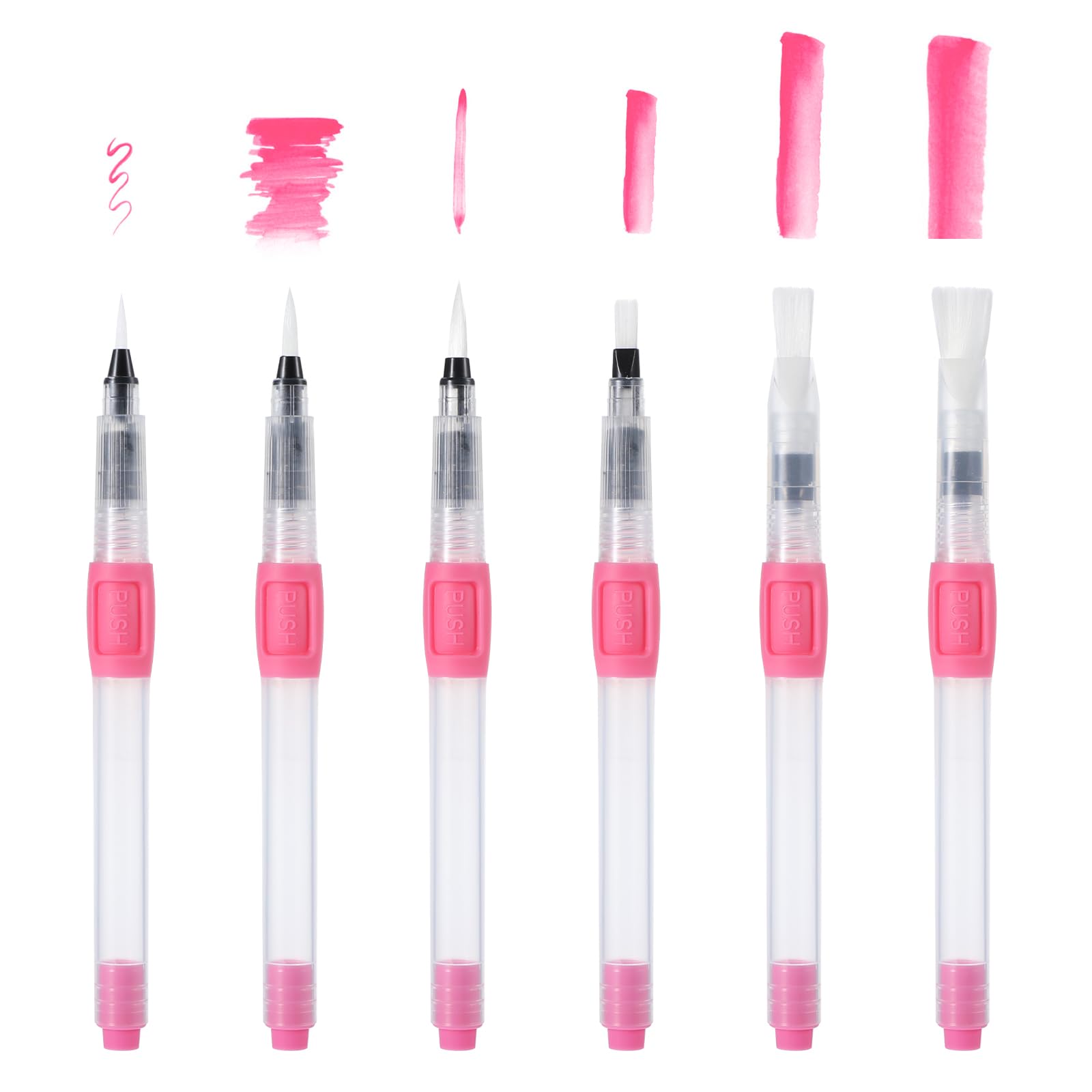 6pcs Watercolor Brush Pens, Water Brush Pen Set, Nylon Water Colour Pens, Refillable Watercolor Paint Pens for Beginner Painting Drawing Art Supplies(Pink)