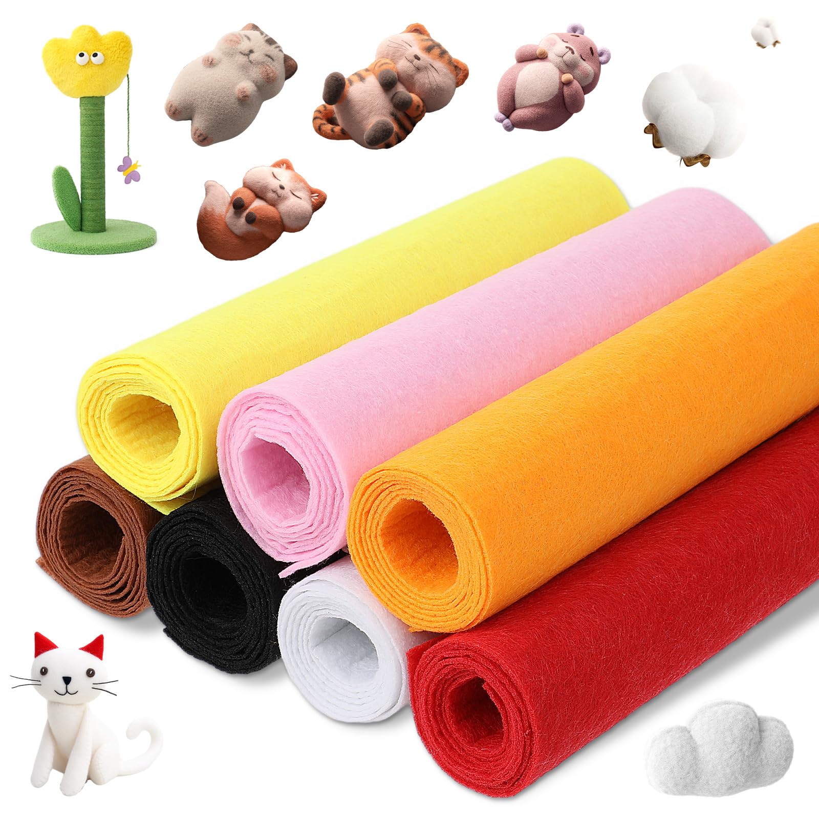 7 Pcs Felt Fabric Sheet brown 35×8 Inch black felt squares cream Assorted 1mm Thick Felt Fabric DIY Craft Square Felt Pack Patchwork Craft Supplies Sewing Projects