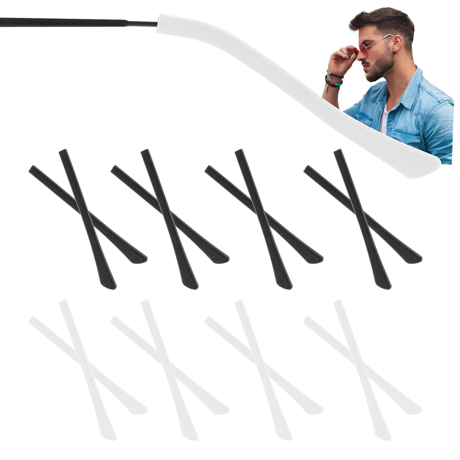 8 Pairs Eye Glasses Ear Grippers Silicone Eyeglass Ear Grips Sleeve Anti Slip Glasses Ear Cushion Ear Pads for Glasses Tightening Holder Temple Tips For Eyeglasses Thin Metal Eyeglass Leg Black White
