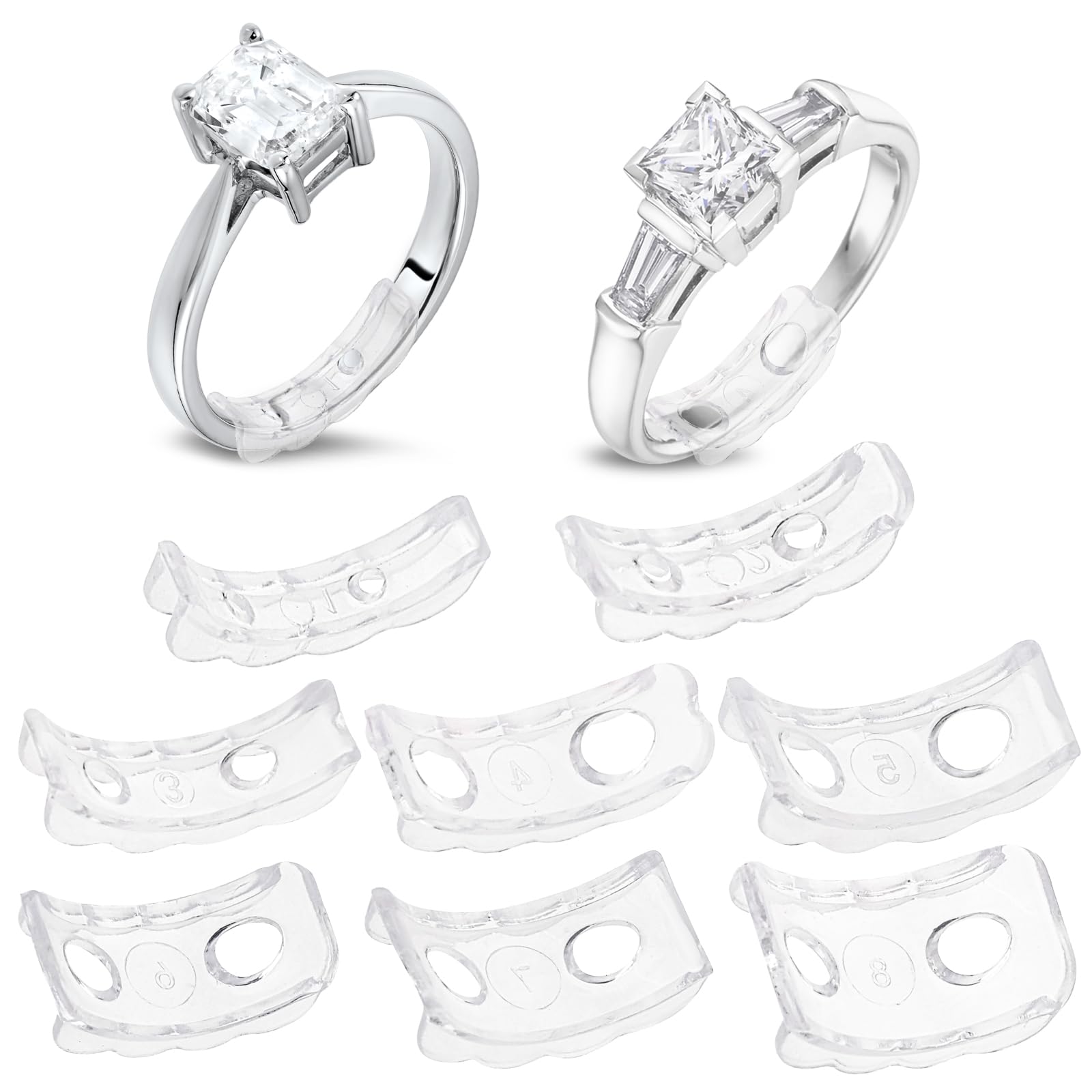 8 Pcs Invisible Ring Size Adjuster for Loose Rings Plastic Ring Sizers for Loose Rings Flexible Ring Guards with Hole Anti-Slip Ring Adjusters for Women Men Ring, 8 Sizes