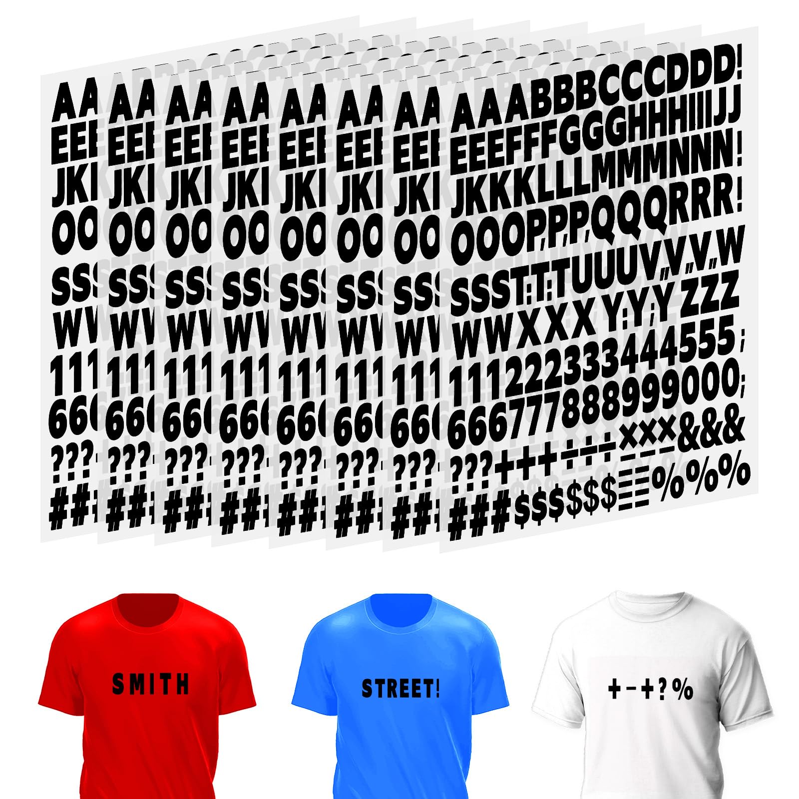 <br>Product Shipping Packing List: 8 sheets of 1328pcs iron-on vinyl black alphanumeric symbols set