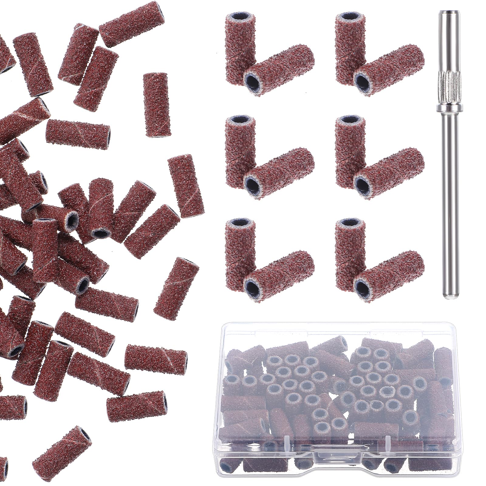 80 Pcs Mini Sanding Bands for Nail Drill with Mandrel Bit 3mm Small Sanding Band Nail Drill Bit Fine Grit Nail Drill Sanding Bands for Acrylic Nails Gel Manicure and Pedicure Supplies(80 Grit, Brown)