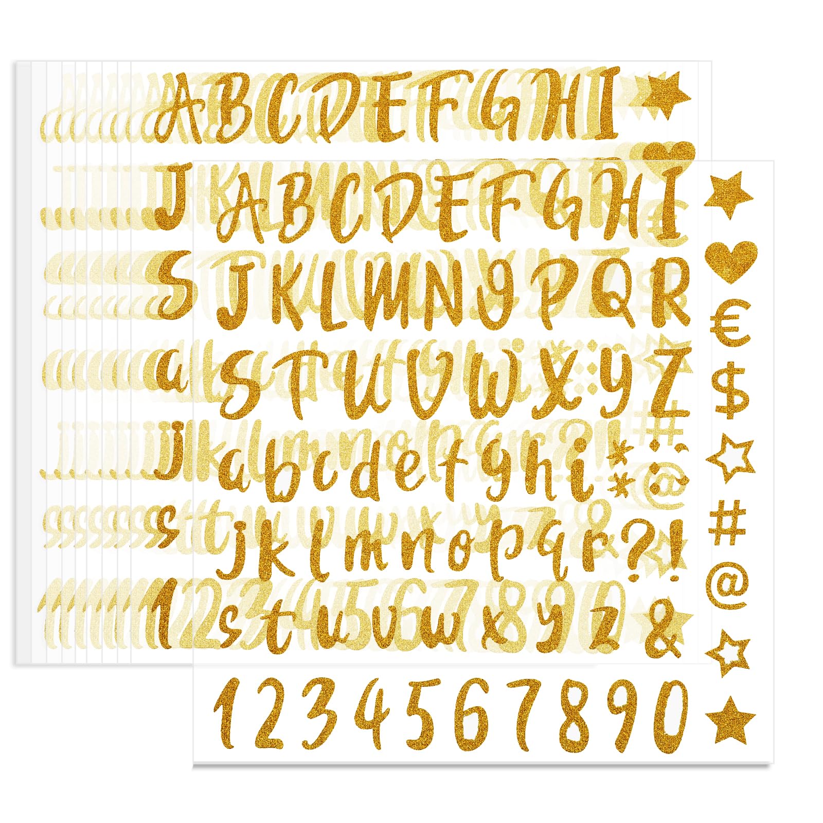 800 Pcs 10 Sheets Gold Letter Stickers Self Adhesive Letter Stickers Small 1.1inch Glitter Letters Stickers Waterproof Alphabet Number Stickersfor DIY Crafts Art Making, Address Number, Decor, Sign