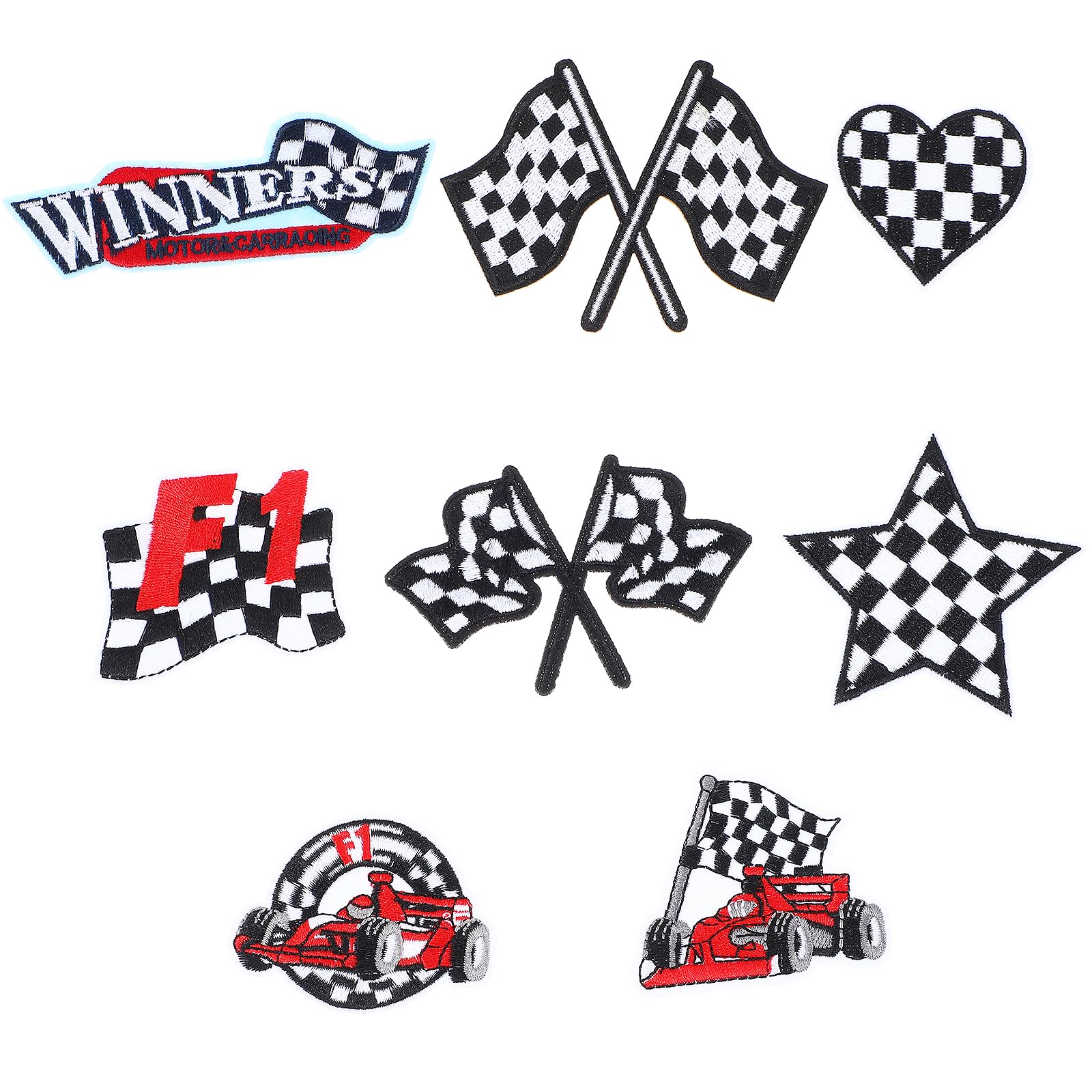 8Pcs Racing Patches Checkered Racing Flag Patches Trucker F1 Appliques Car Racing Motorcycle Embroidery Sewing Iron on Patches for Bags Hat Jacket
