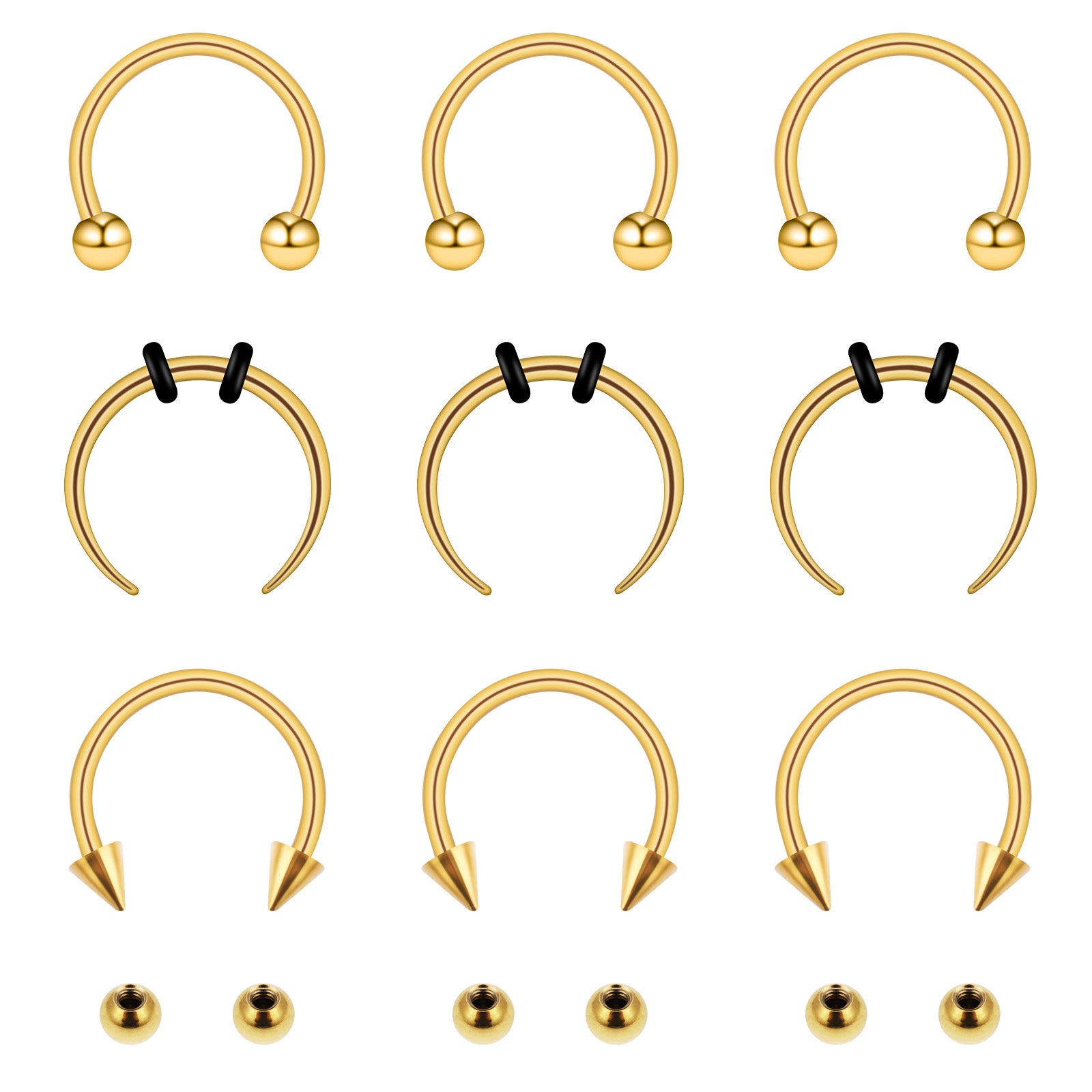 Product selling point: Our package includes 9 horseshoe septum rings, there are 3 different styles to meet your daily matching needs. Made of stainless steel, not easy to rust or fade, low-allergy, safer with external thread design, can be easily removed, convenient for you to replace. The shape is simple and elegant, very suitable for daily travel, can meet the matching needs of different occasions.