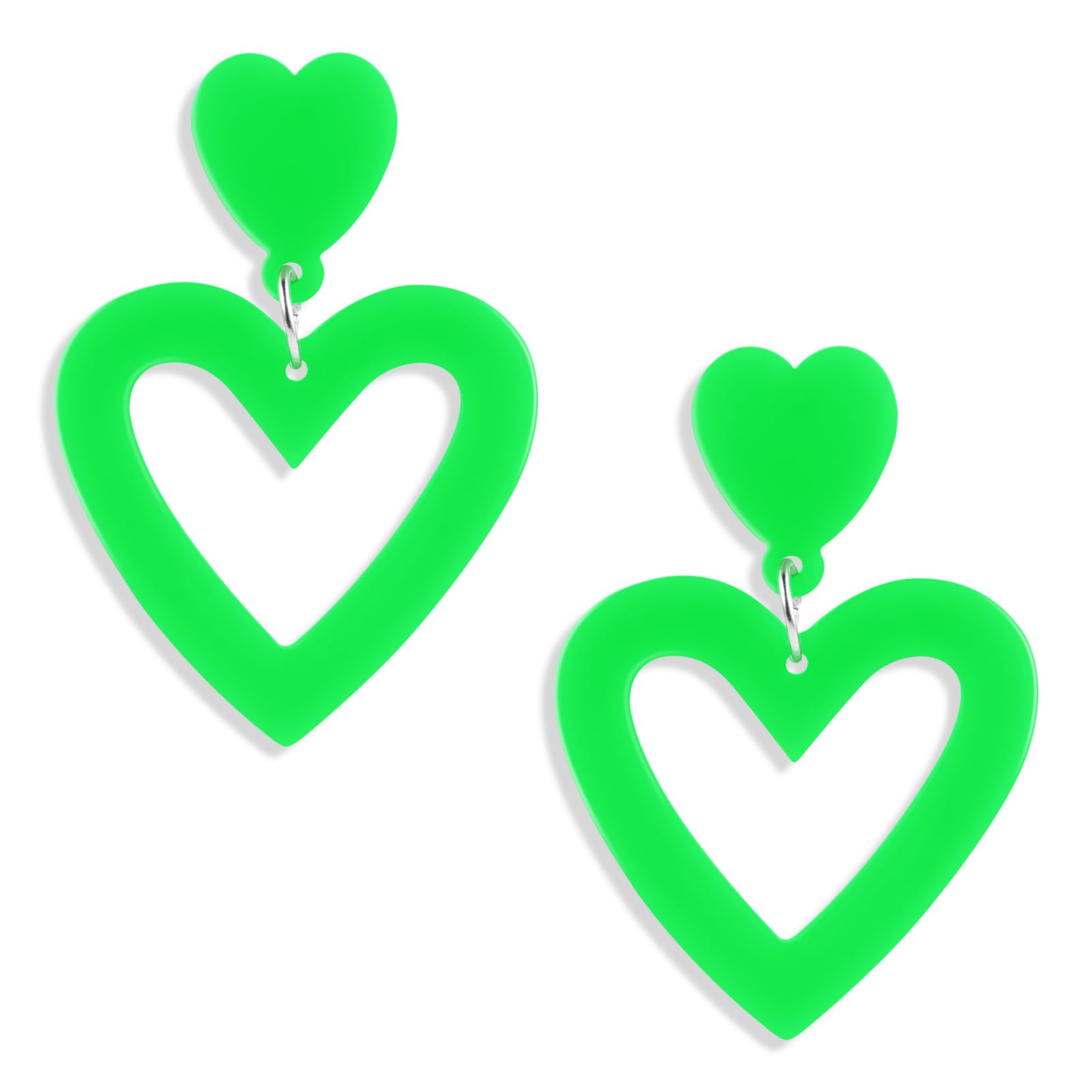Product use and function: Designed to stand out with heart statement earrings that do the talking for you. These groovy neon green heart dangle earrings show an unrestrained fashion attitude while classic heart dangle earrings are a style staple for a reason-they can be worn to work, to dinner, and other formal occasions. Fashion and retro mixed up, sparkly neon green earrings for women 80s retro party, will be a good piece catching the others or your friends' eyes.