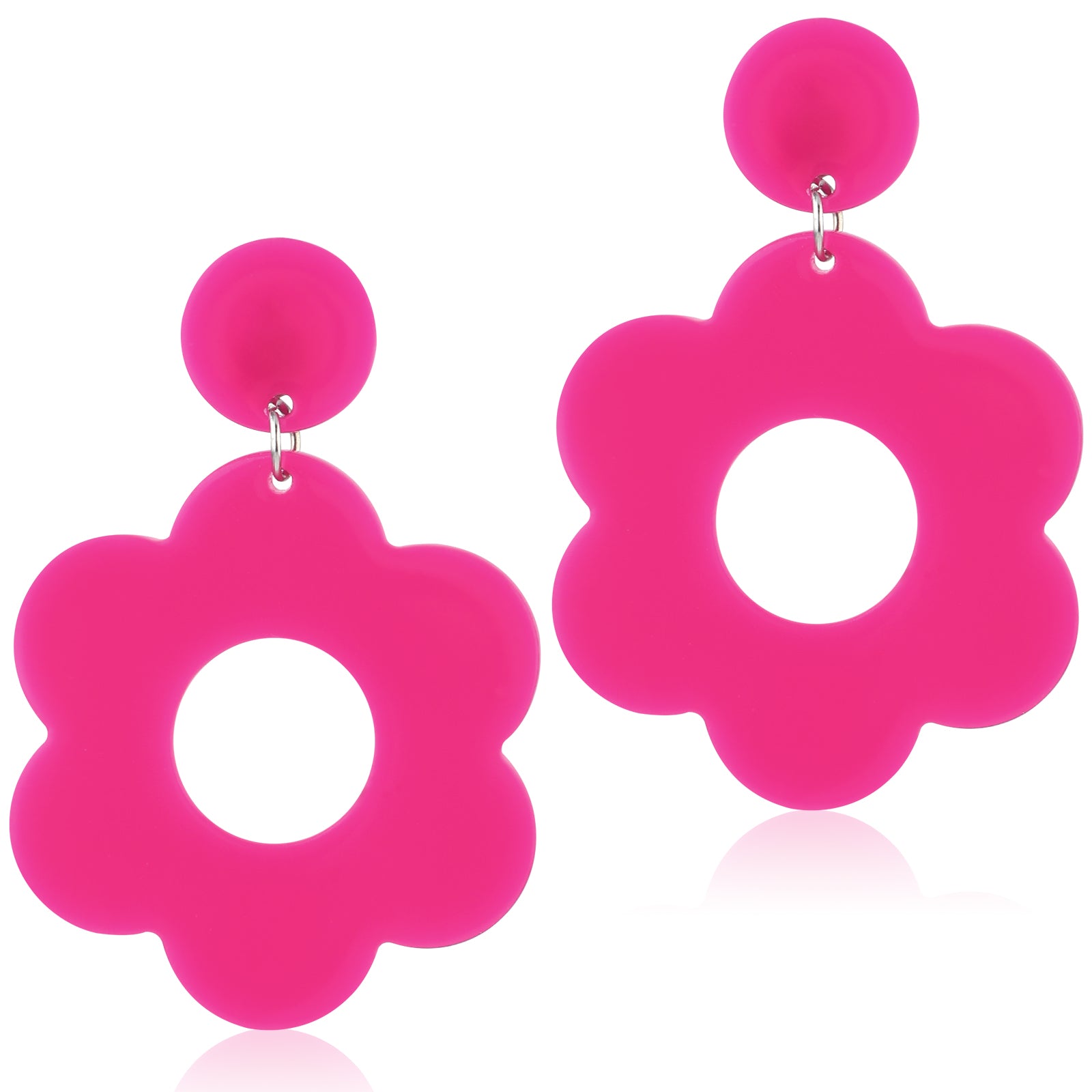 Acrylic Flower Earrings 60s 70s Flower Earrings Retro Flower Earrings Daisy Earrings Cute Floral Earrings Dangle Flower Earrings for Women Girls (Rose red)