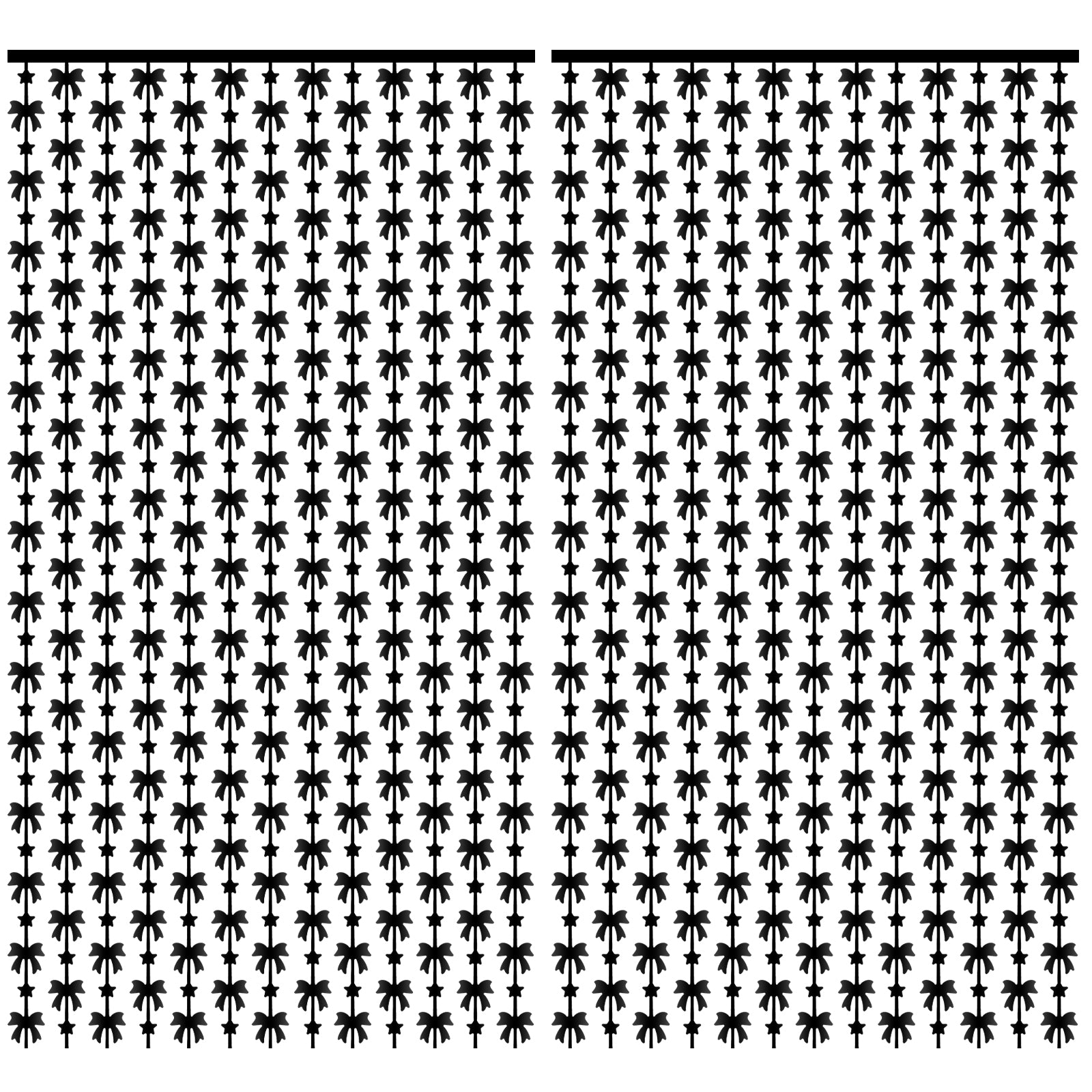 Black Bow Party Decorations, 2 Pack Foil Fringe Curtains, 3.3x6.6ft Photo Booth Backdrop for Birthday, Bachelorette, Baby Shower, Halloween Events