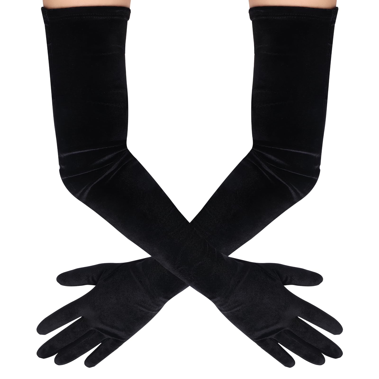 Black Long Velvet Gloves Elbow Length Gloves 1920s Opera Gloves for Women Fancy Long Satin Gloves Black Bridal Gloves Wedding Gloves Dress Gloves Flapper Opera Party Evening Gloves