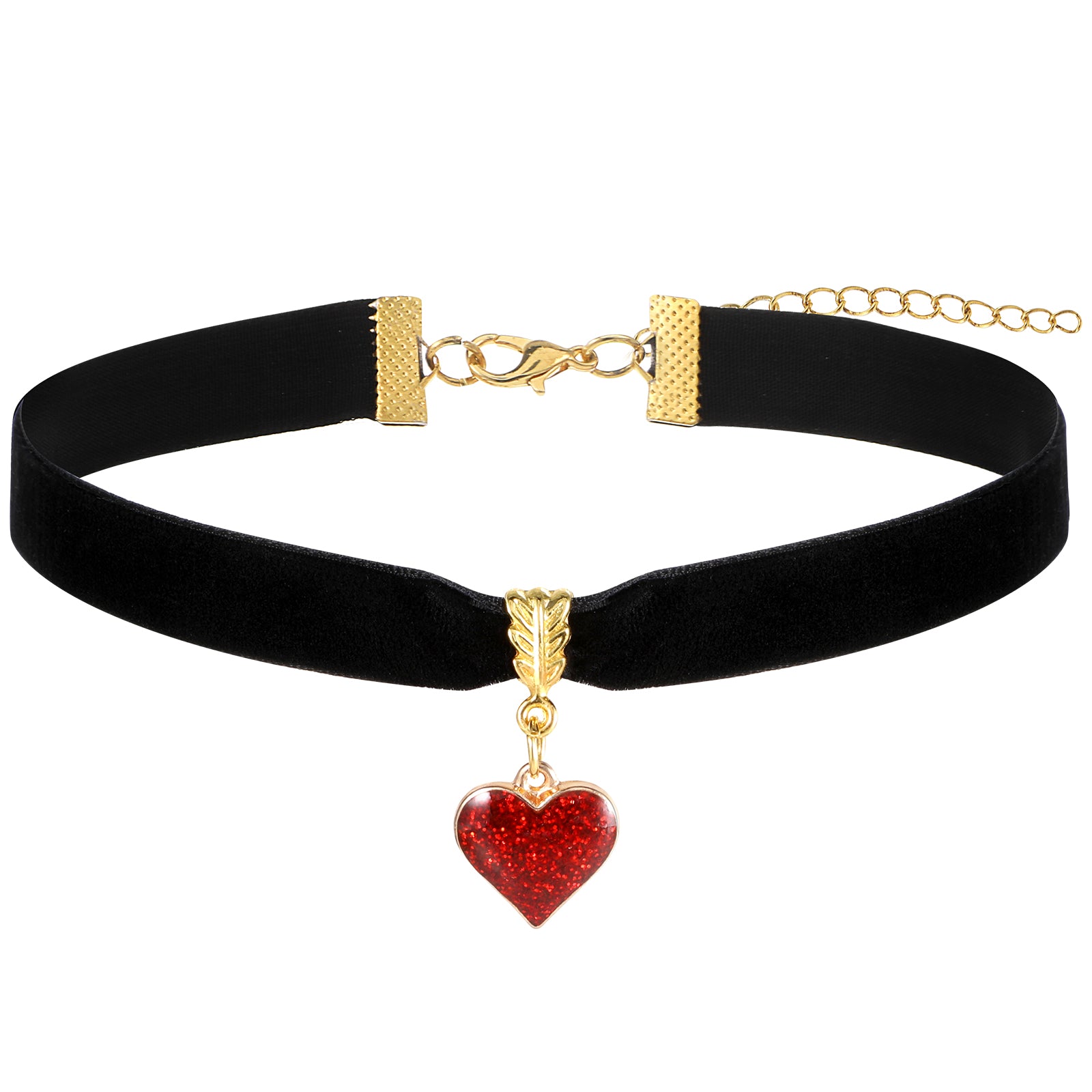 Black Velvet Choker Necklace Adjustable Gothic Choker with Heart Pendant Thick Goth Choker for Women Girls Gothic Jewelry Gifts for Halloween Birthday Party Cosplay (Red Heart)