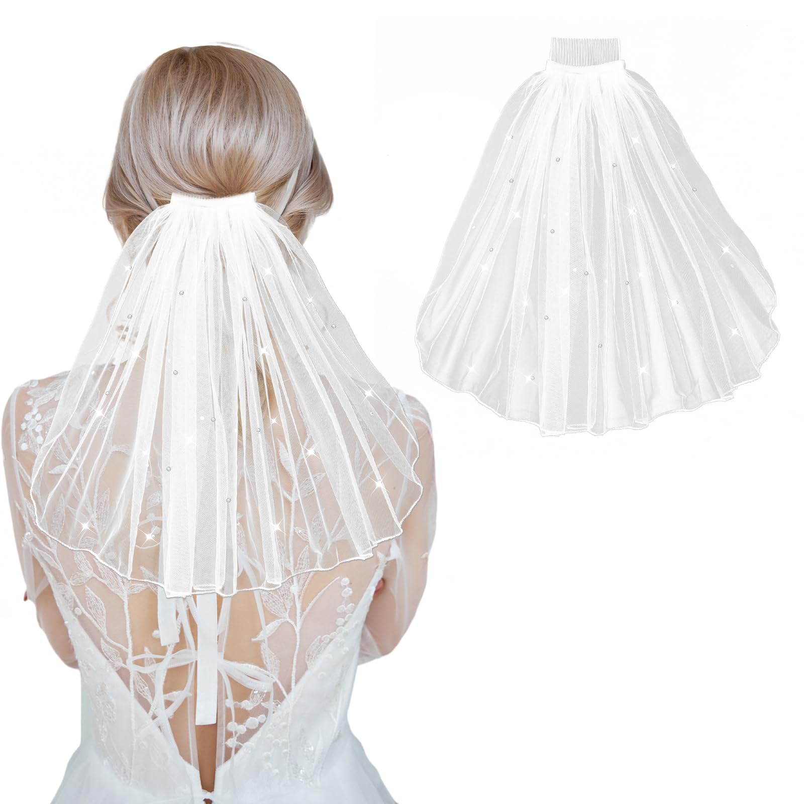 Bridal Veil for Wedding Women's Short Tulle Veil with Rhinestones for Wedding Bachelorette Party Decorations Bridal Shower