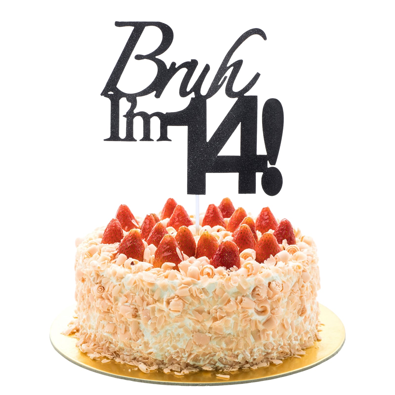 Bruh I'm 14 Cake Topper, Black Glitter Birthday Decorations For Teens, Funny 14 Year Old Party Supplies, Cake Decor, 16th Birthday Celebration(Bruh I'm 14!)