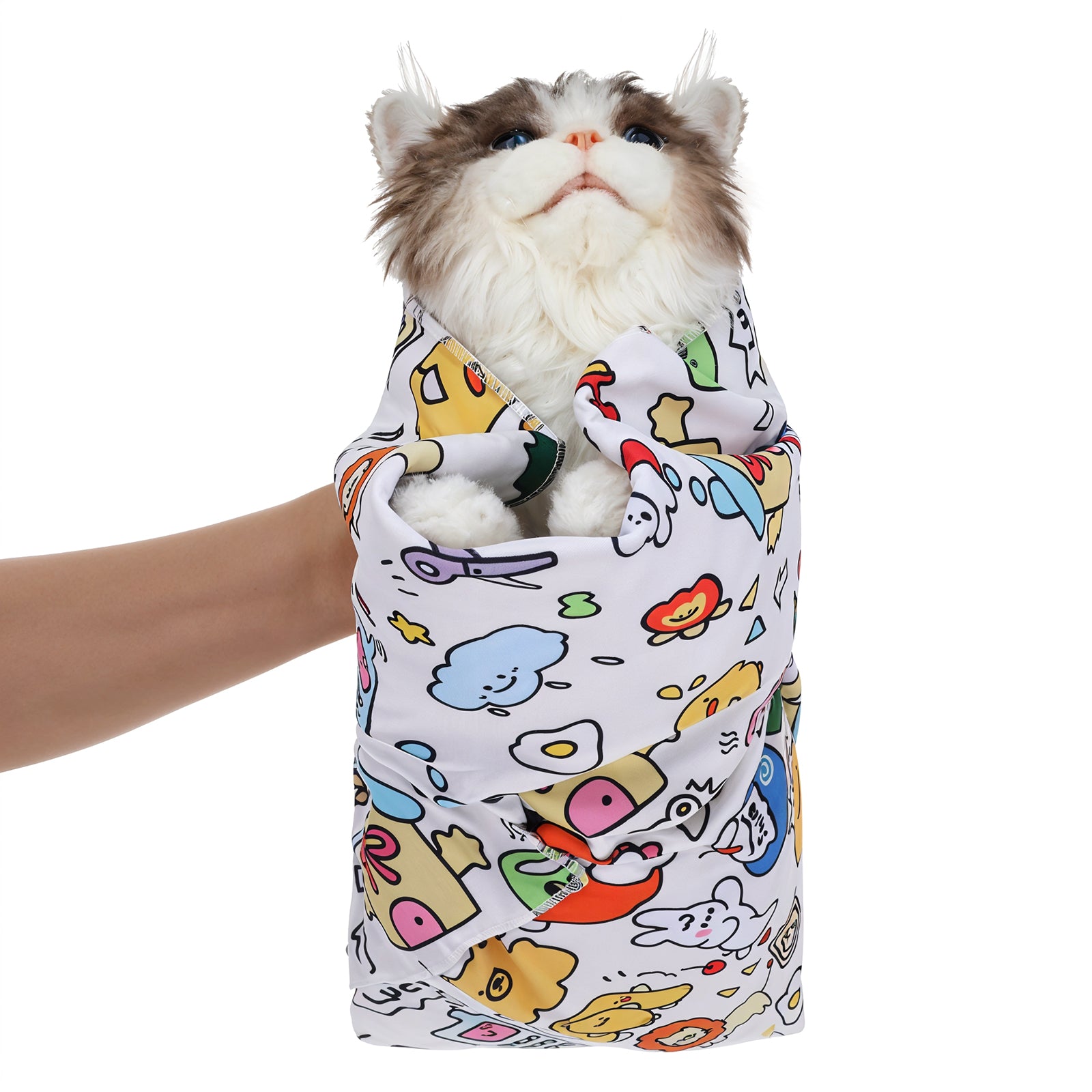 Cat Wrap for Cutting Nails, Cat Restraint for Nail Clipping, 70x70cm Cat Swaddle Wrap, Self-Adherent, Anti-Bite, Anti-Scratch, Anti-Escape Cat Grooming Wrap, Multifunctional Pet Tool (Graffiti Color)