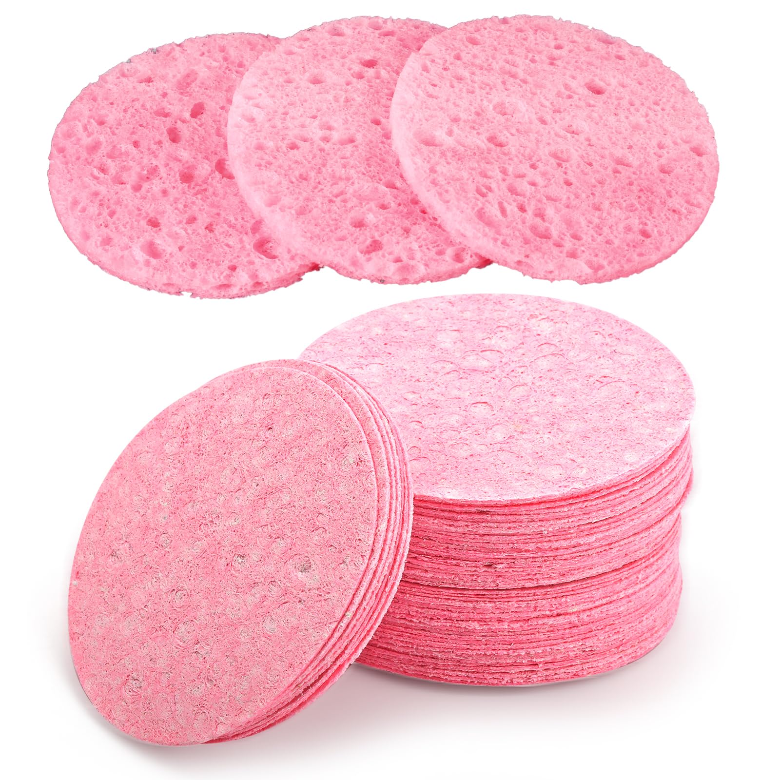 Compressed Facial Sponges 50 Pieces Disposable Expedient Travel Face Sponges for Cleansing Exfoliating Makeup Estheticians Spa(Pink)