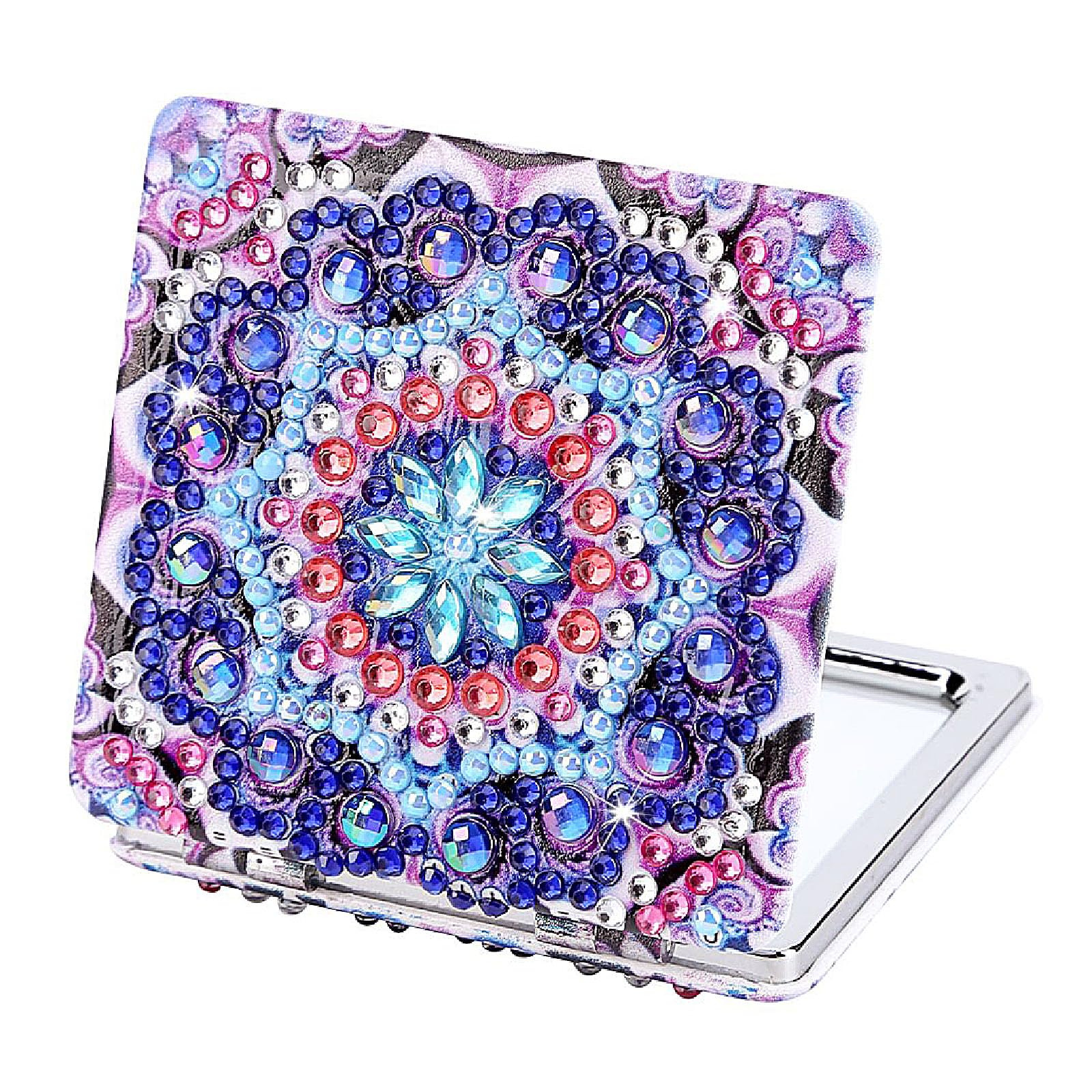 Diamond Art Mirrors Diamond Paintng Compact Mirror DIY Pocket Makeup Mirror with Mandala Diamond Paintng Crafts Cover Small Handheld Pocket Folding Mirror Diamond Dot Art Projects for Kids Adults