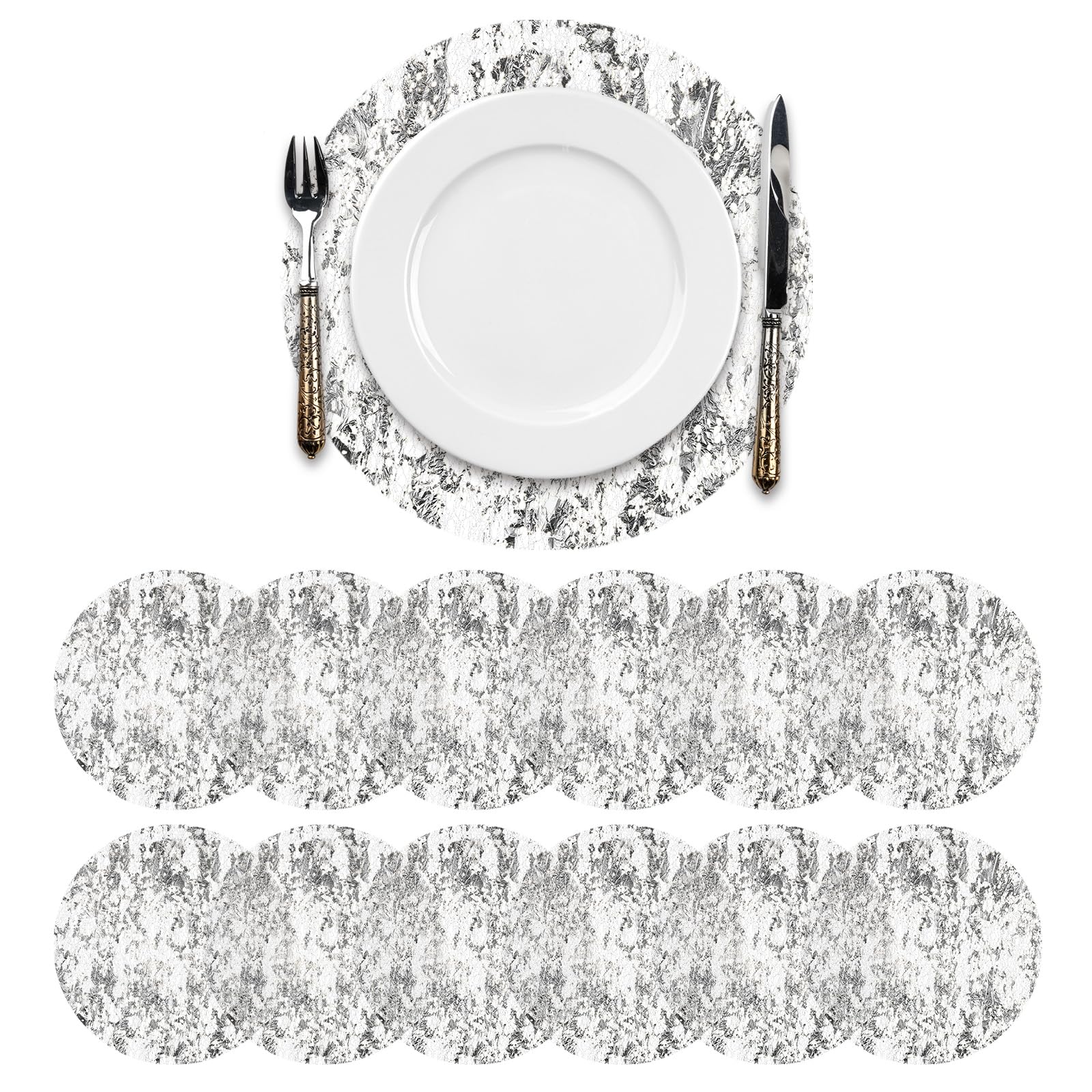 Disposable Silver Placemats 12Pcs Round Gold Foil Mesh Pressed Table Mates Gold Doilies for Dining Table Wedding Birthday Party Holiday Home Decoration
