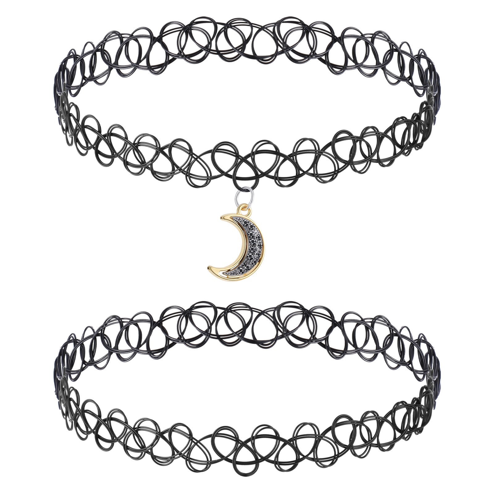 DIVINA VITAE 2 Pcs Black Tattoo Choker Necklace Set(Moon)