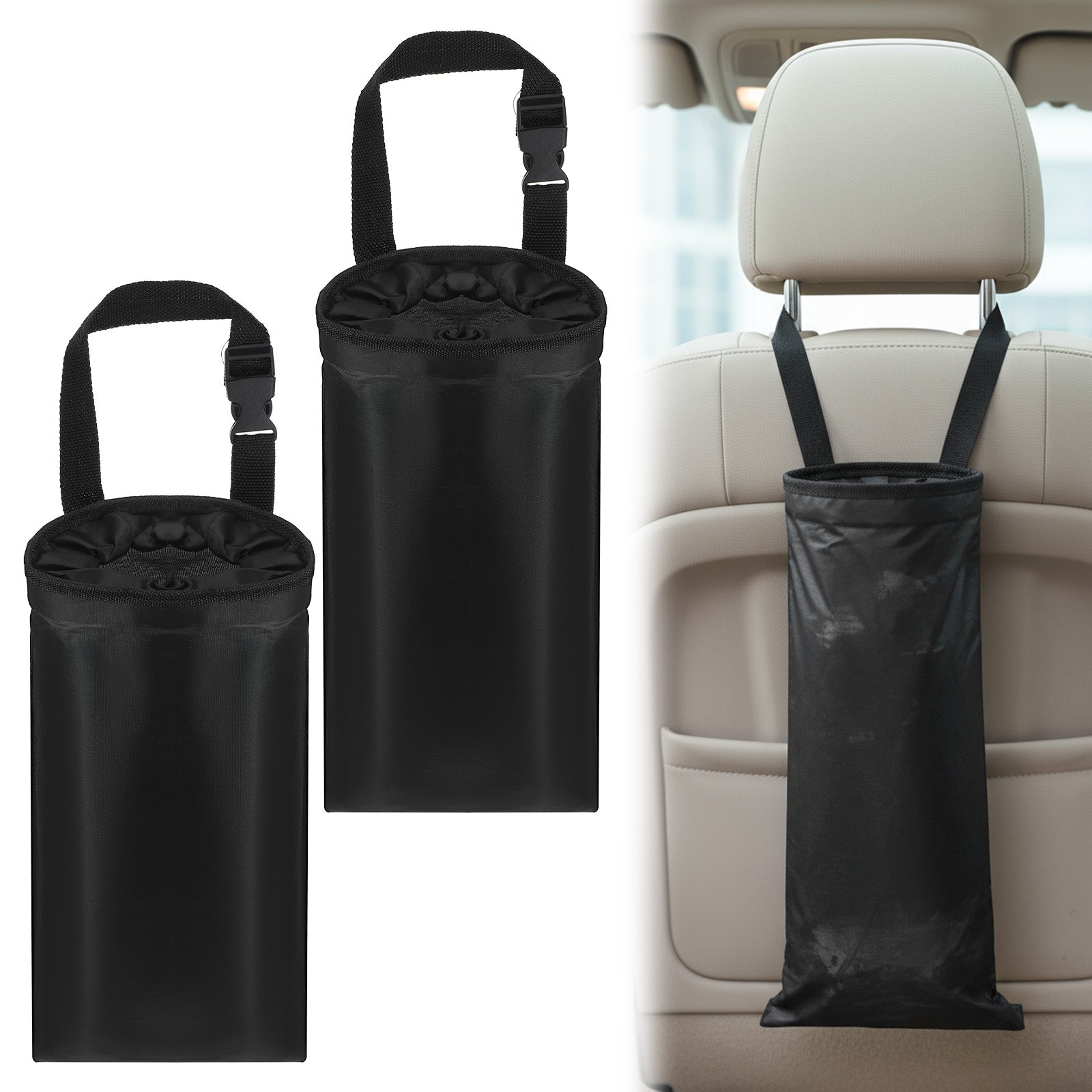 DIVINA VITAE 2 PCS Car Trash Bags, Washable Oxford Fabric, Elastic Top Opening, Sticky Strap Bottom, Adjustable Straps, Seat Back Garbage Can for Cars, SUVs, Travel