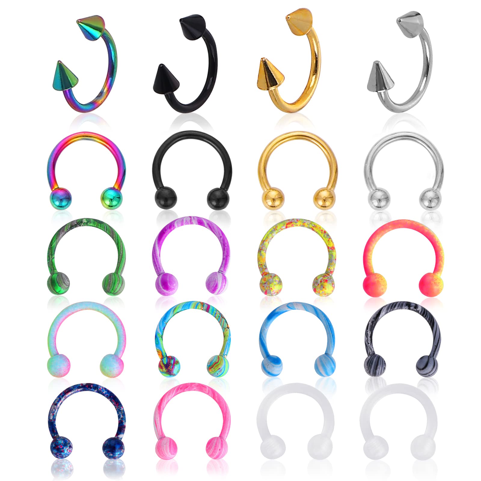 DIVINA VITAE 20Pcs Stainless Steel Nose Ring Hoop Nose Piercing Jewelry Cartilage Helix Tragus Earring Hoop Lip Horseshoe Piercing Retainer for Women and Men