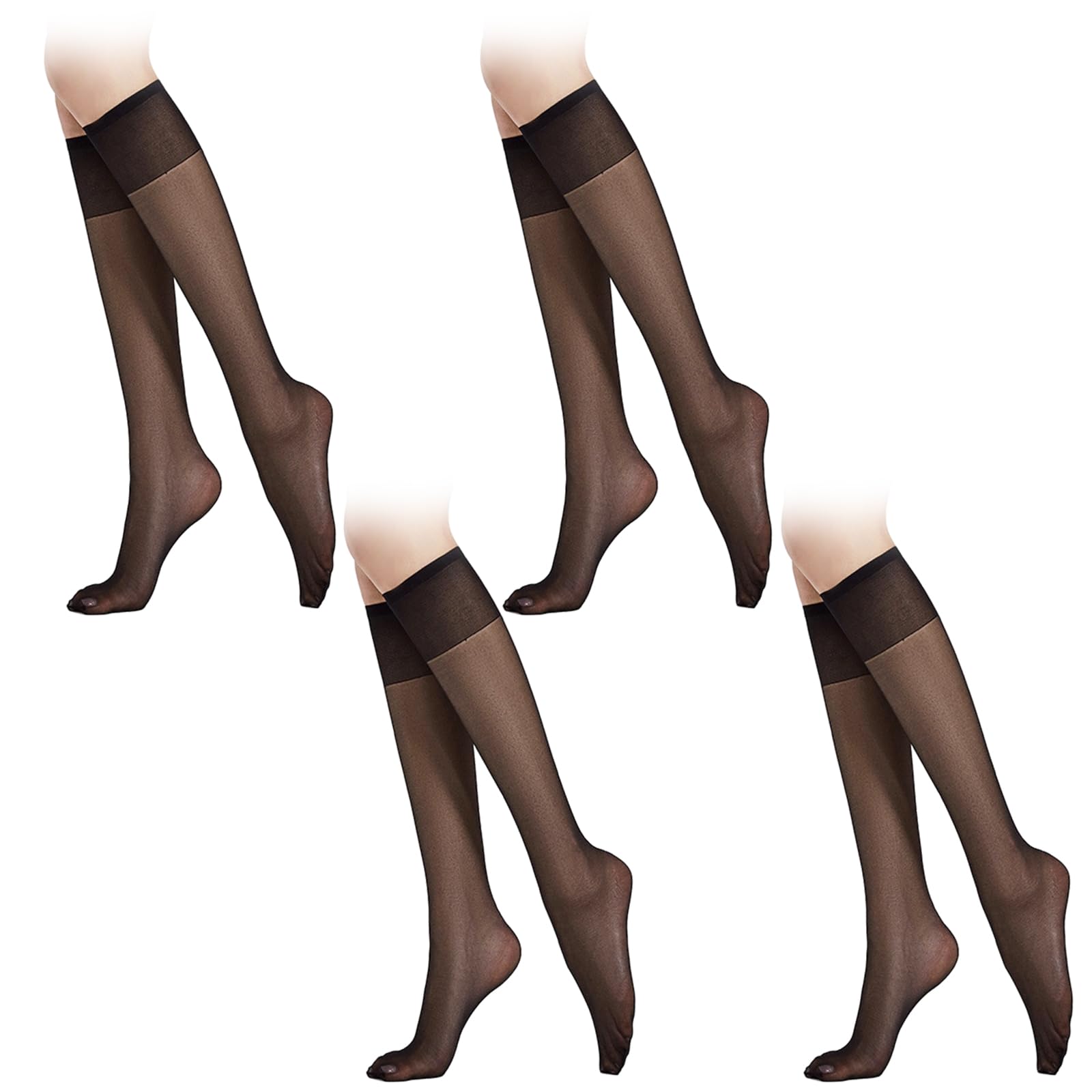 DIVINA VITAE 4 Pairs Black Knee High Tights Sheer Knee High Stockings with Energizing Support 20D Nylon Knee Highs for Women Smooth Silk Stockings Legs Knee Highs Tights Socks Elastic Fine Knee Socks