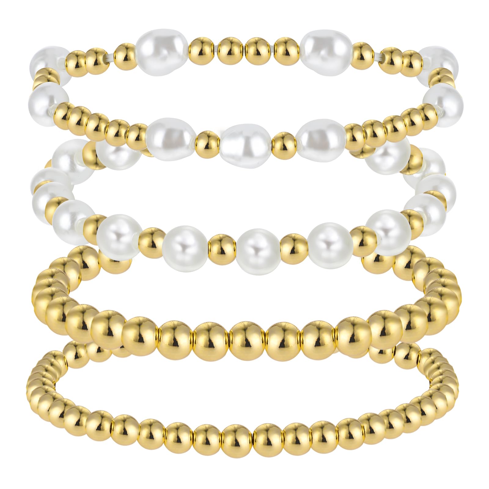 DIVINA VITAE 4 Pcs Pearl Gold Bracelet Stack Gold Plated Dainty Gold Pearl Bracelet Stackable Stretch Bead Ball Bracelet Set Bohemian Gold Beaded Bracelets Jewelry Gifts for Women Teen Girls