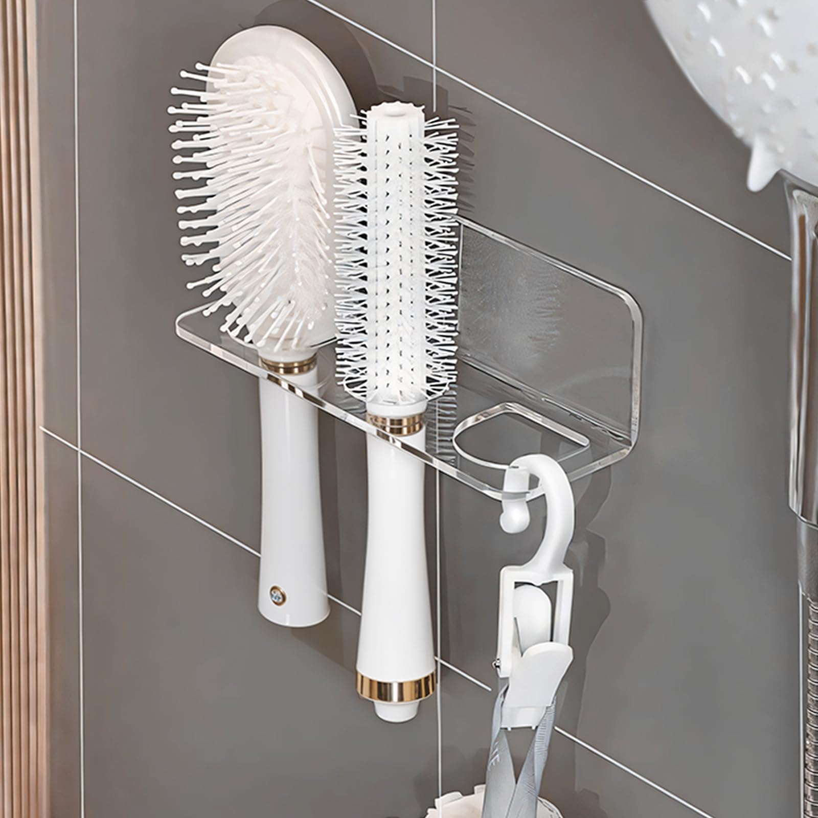 DIVINA VITAE Acrylic Hair Brush Holder Adhesive for Bathroom Hair Tool Oragnizer Hair Dryer Holder Wall Mounted with 3 Holes for Hair Dryer Curling Wands Hair Straighteners(Transparent)