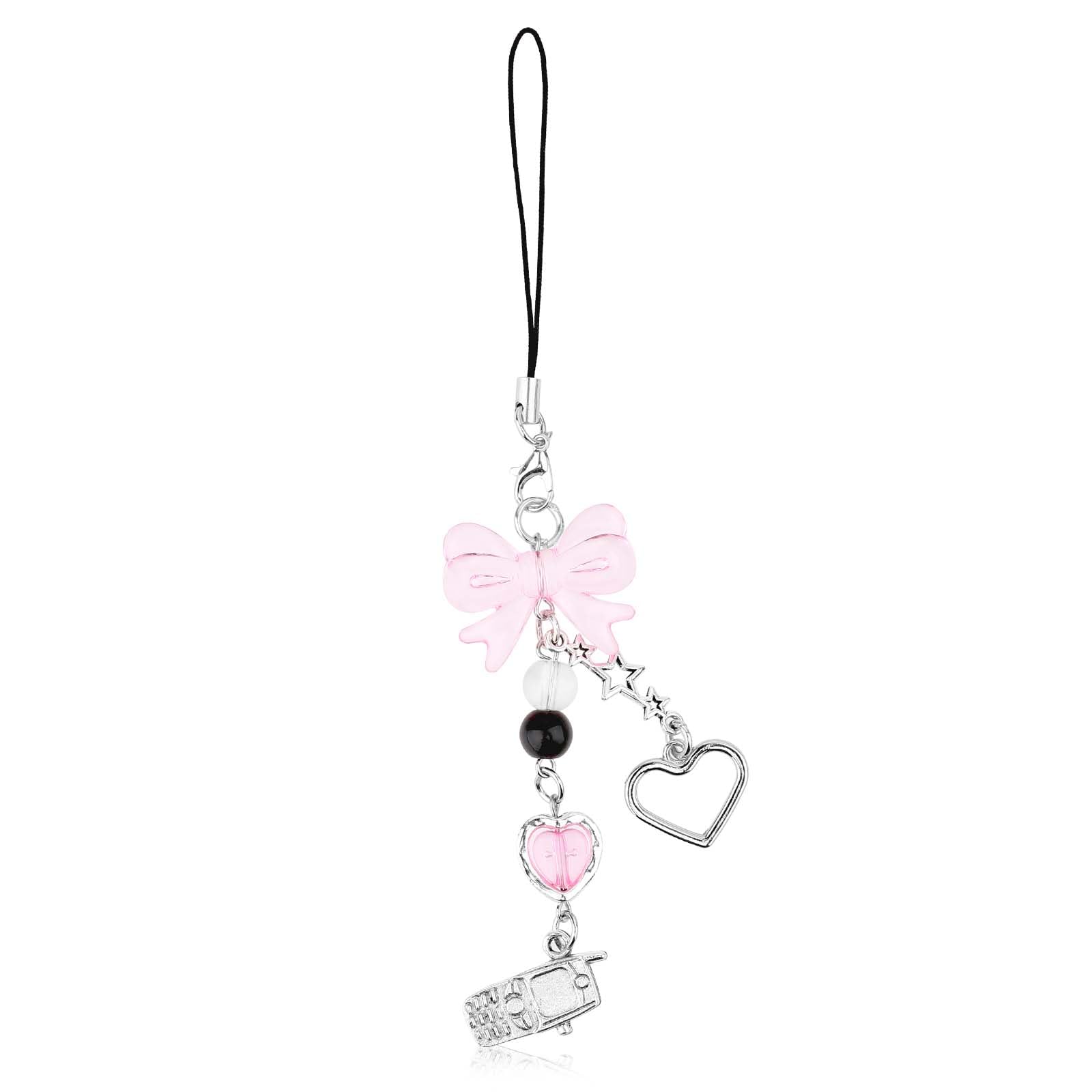 DIVINA VITAE Cute Phone Charm Y2K Phone Charm Accessories Pink Phone Charm Star Bowknot Love Heart Phone Lanyard Wrist Strap for Wallet Bag Purse