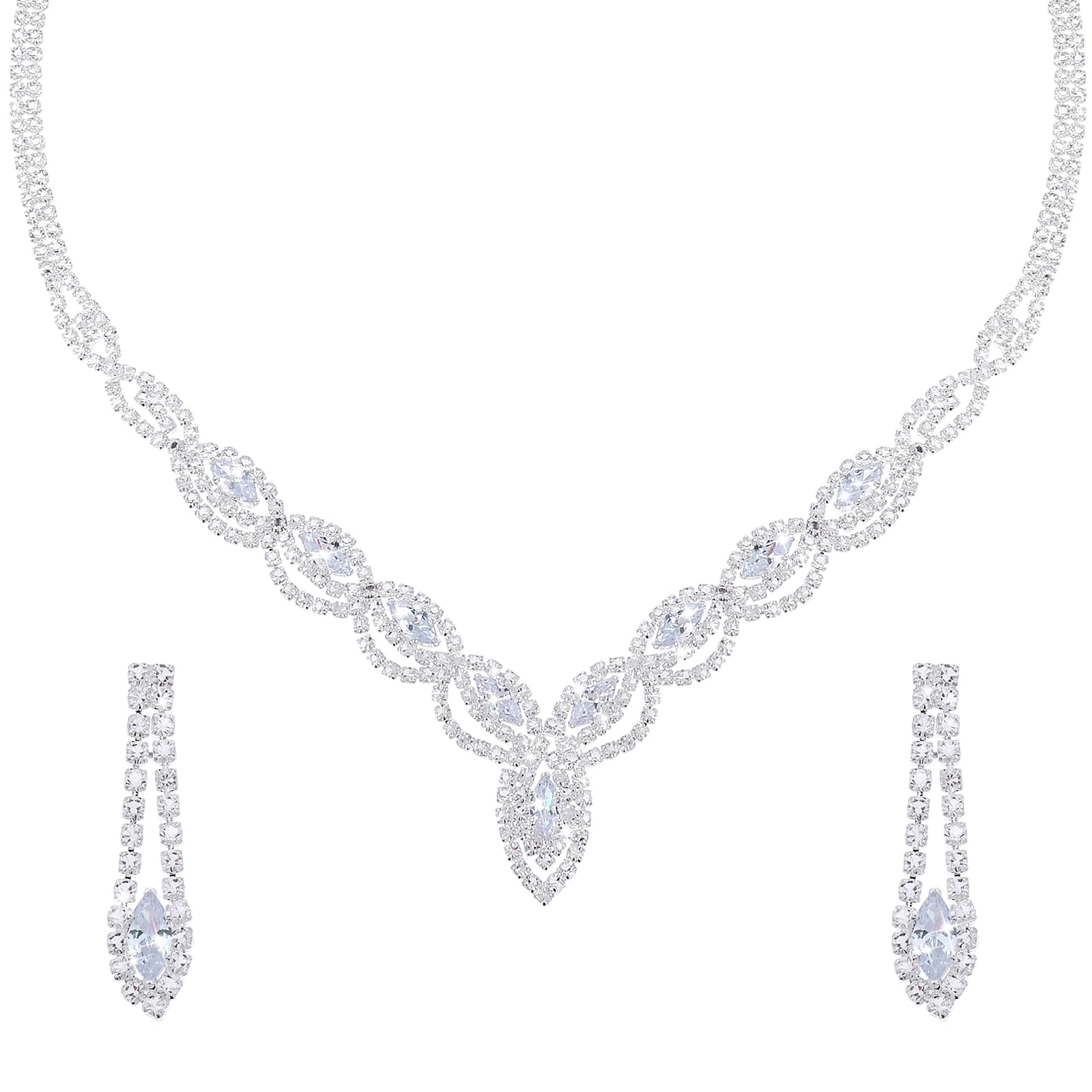 DIVINA VITAE Sparkle Rhinestone Necklace And Earring Set Formal Bridal Wedding Jewelry Sets Bride Bridesmaid Prom Costume Jewelry Set for Bride Women Girls Wedding Accessories(Silver)
