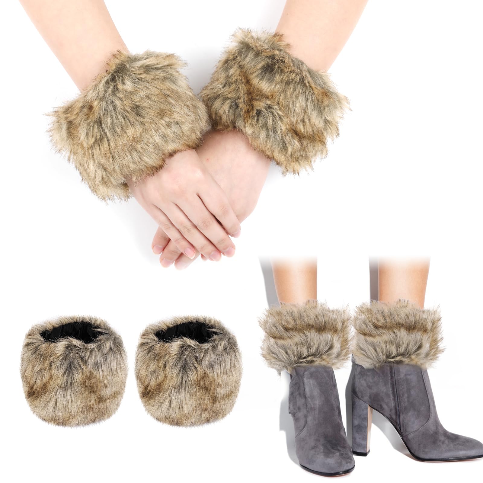 DIVINA VITAE Women's Faux Fur Wrist Cuffs Black Plush Arm Warmers Short Furry Bands Wrist Warmer Winter Fox Furry Wristbands Fluffy Fur Cuff Bracelet Arm Warmer Accessories