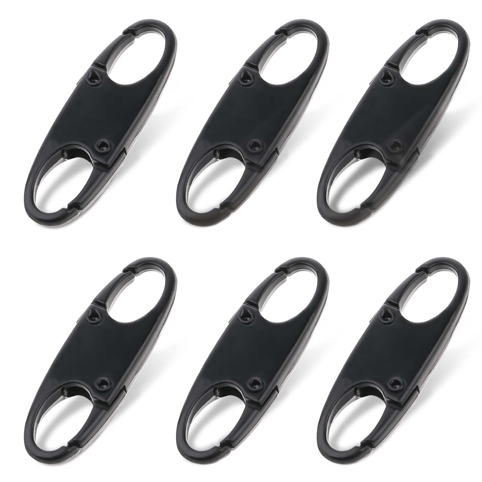 DIVINA VITAE Zipper Clips Anti Theft Deterrent, 6PCS S Carabiner Small Zipper Pull Locks Mini Snap S Hooks for Backpacks Camping Fishing Traveling Outdoor Sports (Black)