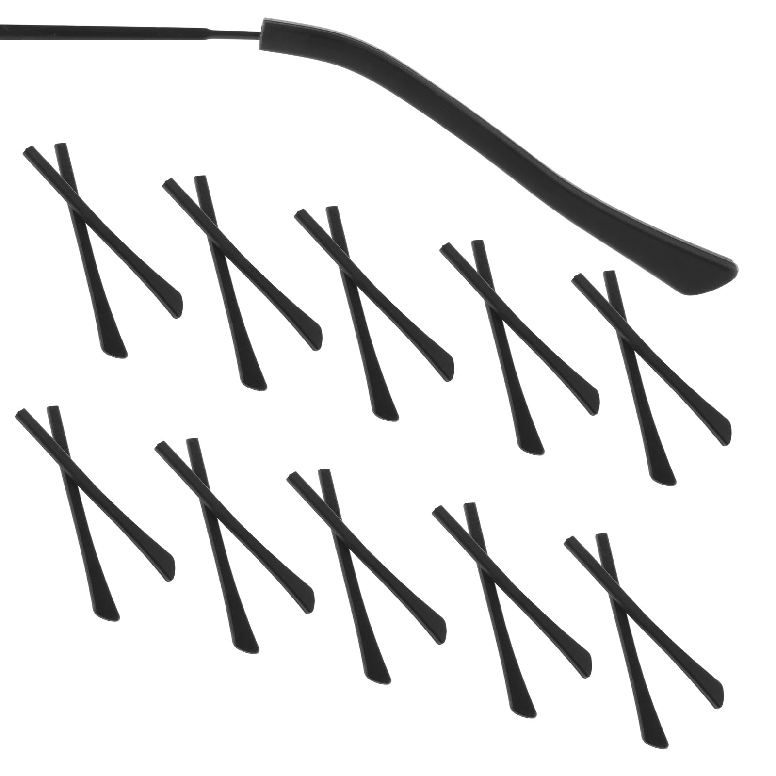 Eyeglass End Tips Soft Silicone Eyeglass Replacement Temples Anti-Slip Ear Sock Pieces Tube Sleeve for Thin Metal Eyeglass Temple (10 Pairs, Black)