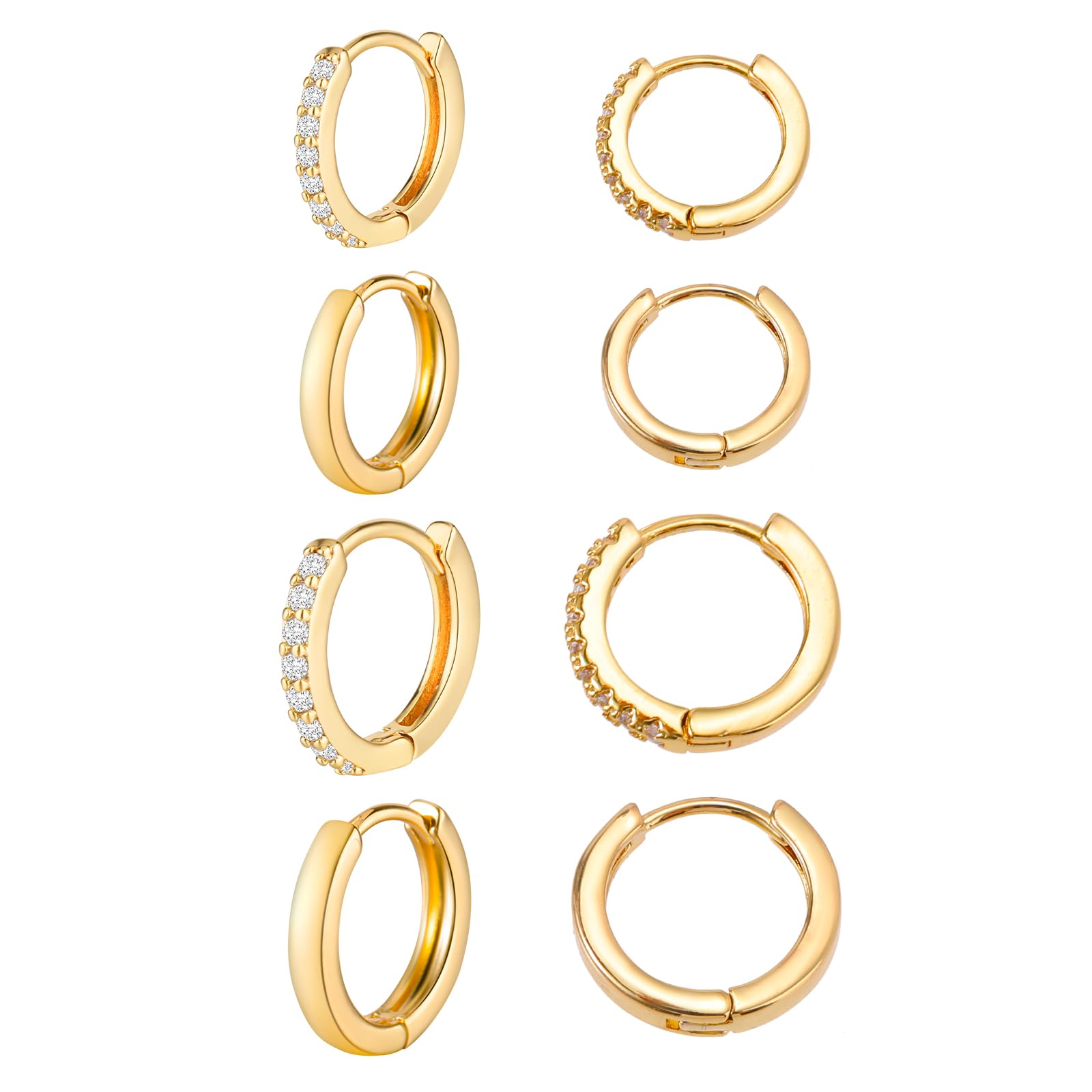 Gold Earrings for Women 4 Pairs Small Gold Huggie Hoop Earrings Tiny Gold Hoop Earrings with Cubic Zirconia Cute Cartilage Earring Set for Multiple Piercing