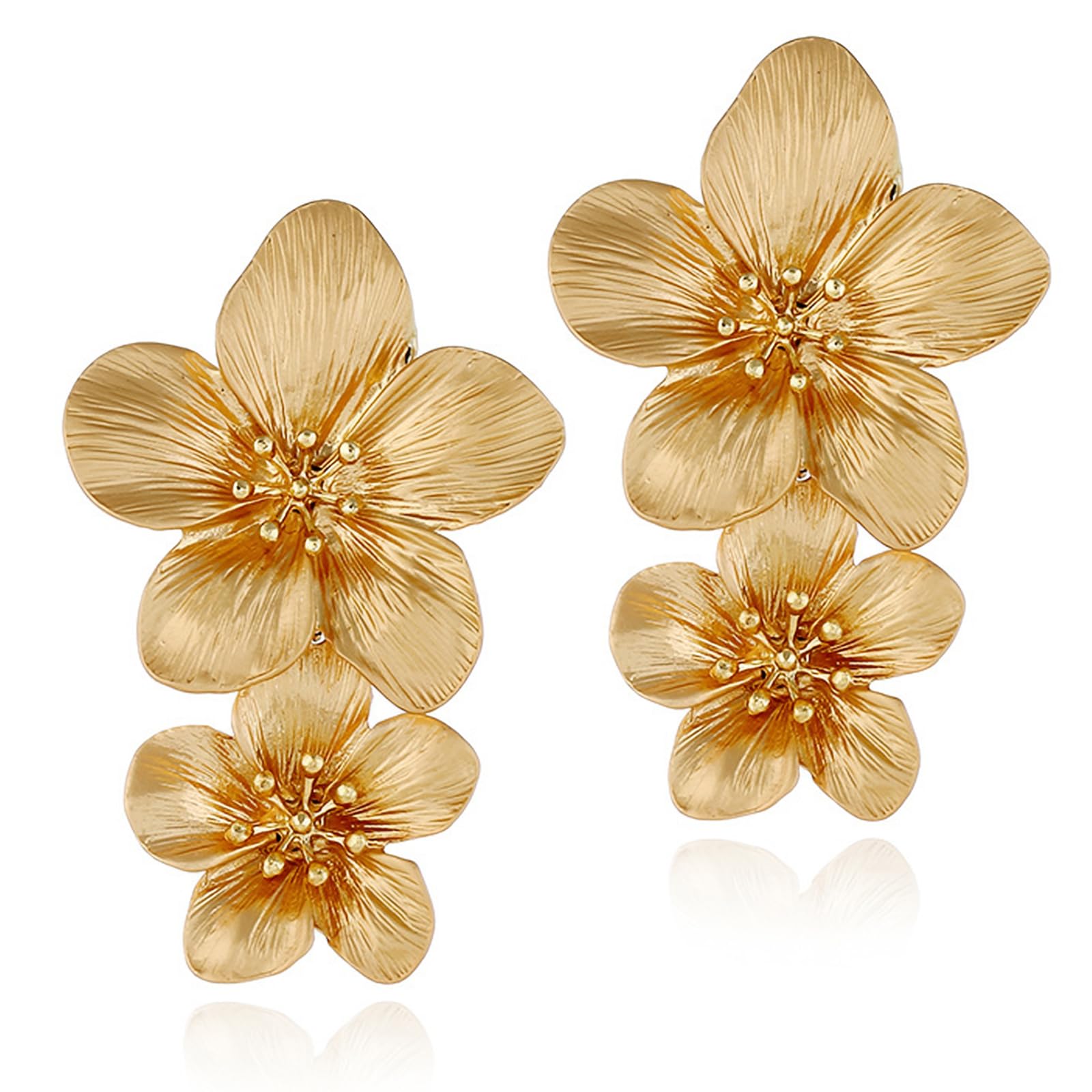 Gold Earrings for Women Trendy,Chunky Gold Flower Stud Earrings, Statement Stud for Women, Large Flower Dangling Ear Rings
