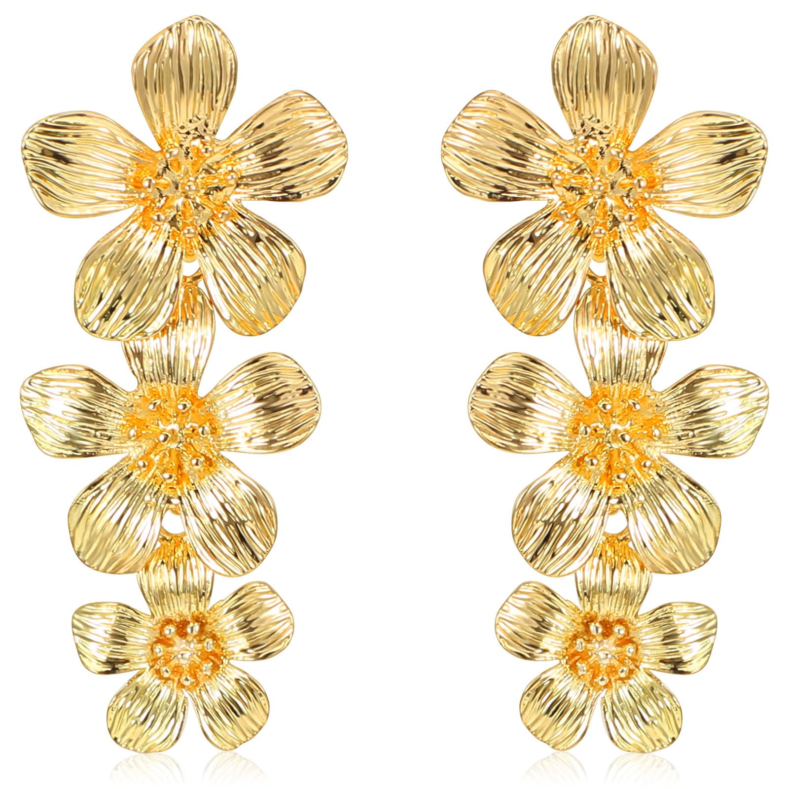 Product List: 1 pair of long gold flower earrings