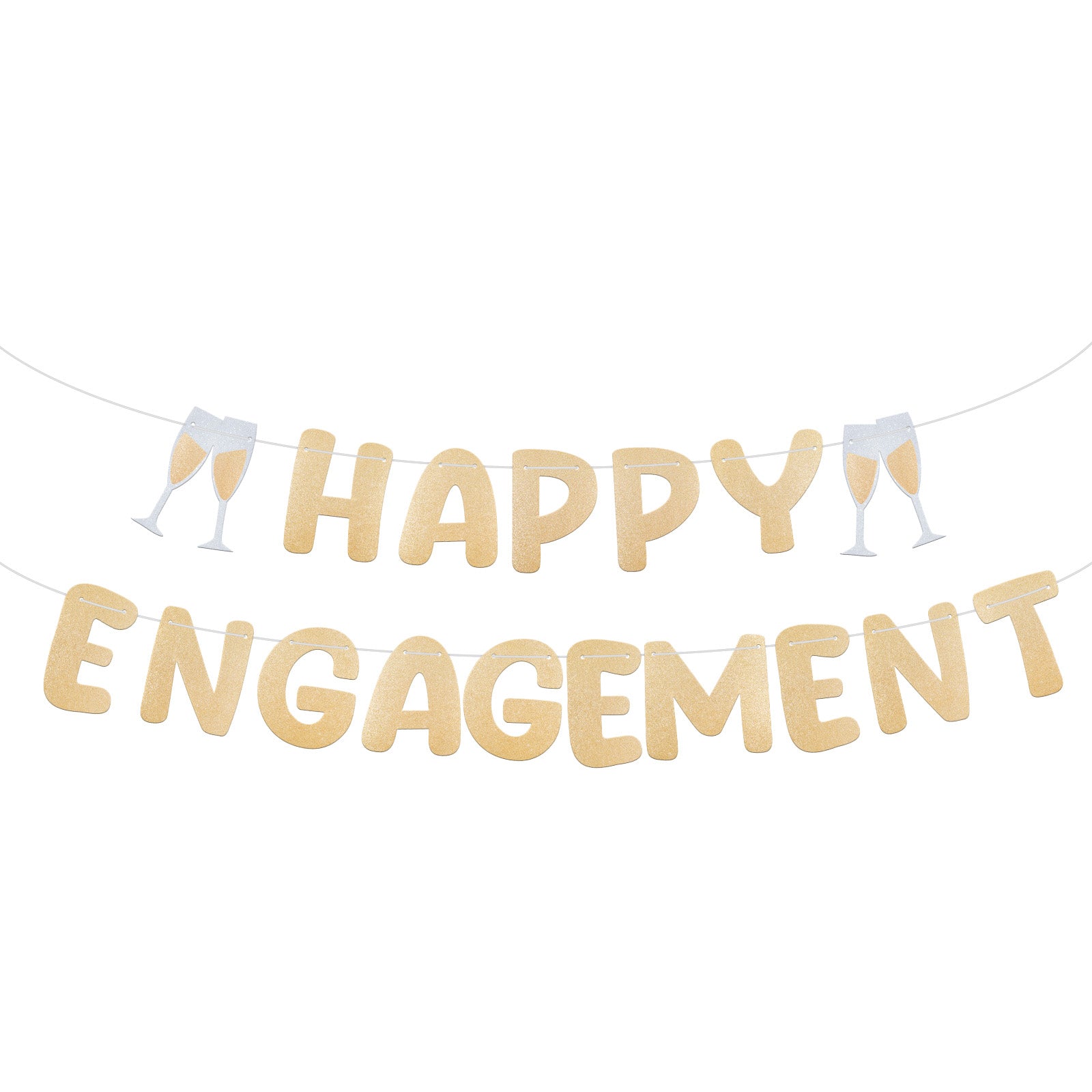 Gold Glitter Happy Engagement Banner, Engagement Decorations, Bachelorette Party Decorations, Pre Strung Engagement Party Banner Engaged Banner for Congratulations (Champagne Gold)