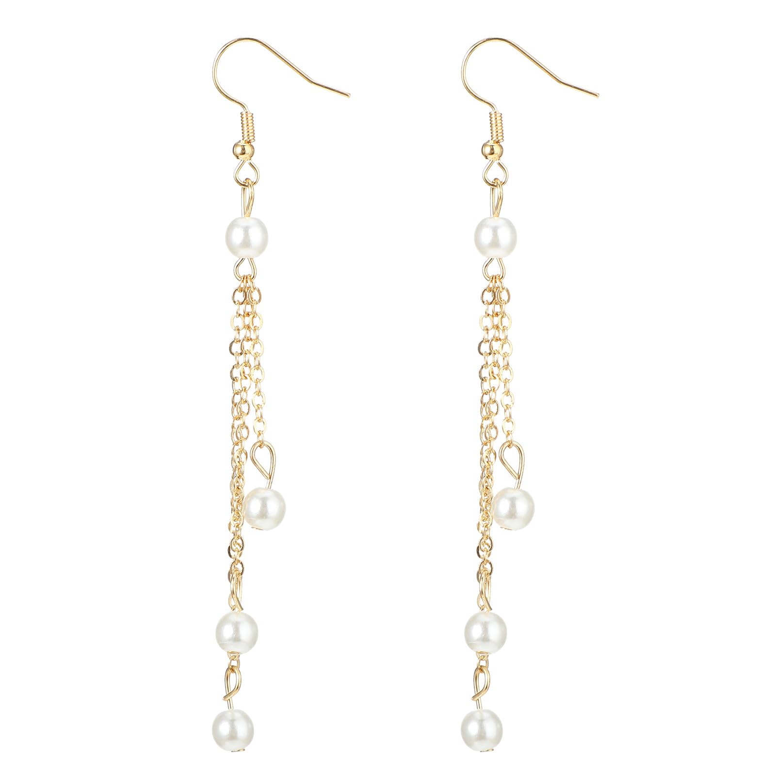 Gold Pearl Tassel Earrings Vintage Pearl Drop Earrings Anti-sensitive Long Pearl Chain Earrings Wedding Jewelry Gift for Women and Girls