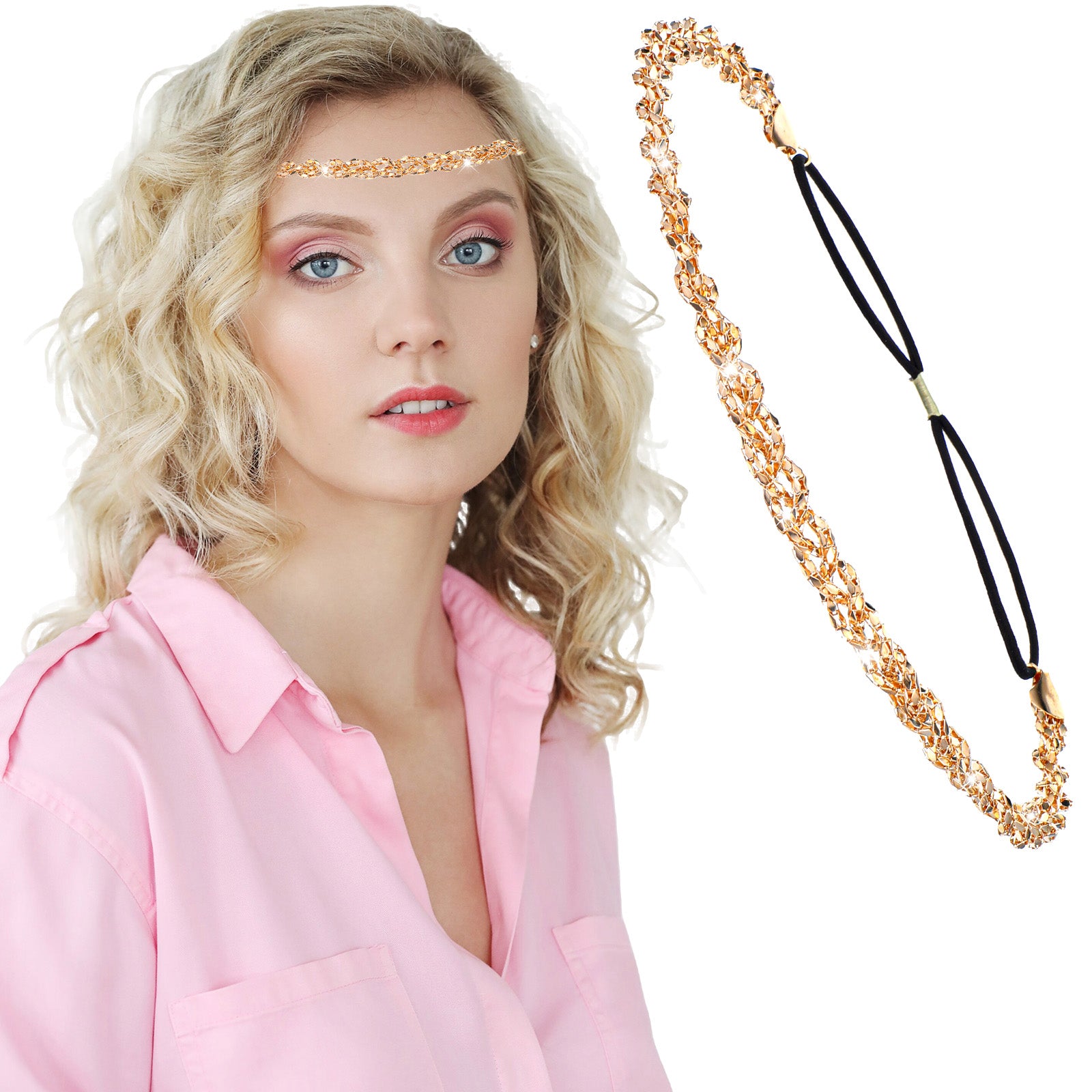 Function and Use: This chic metal-textured braided chain headband is perfect for adding a touch of elegance to any outfit. Whether you're dressing up for a special occasion or adding a stylish accessory to your everyday look, this headpiece is a must-have.